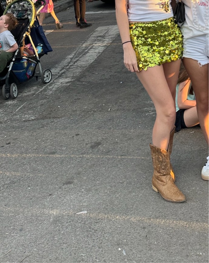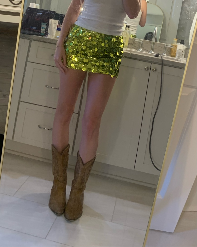 Green sequin mini skirt