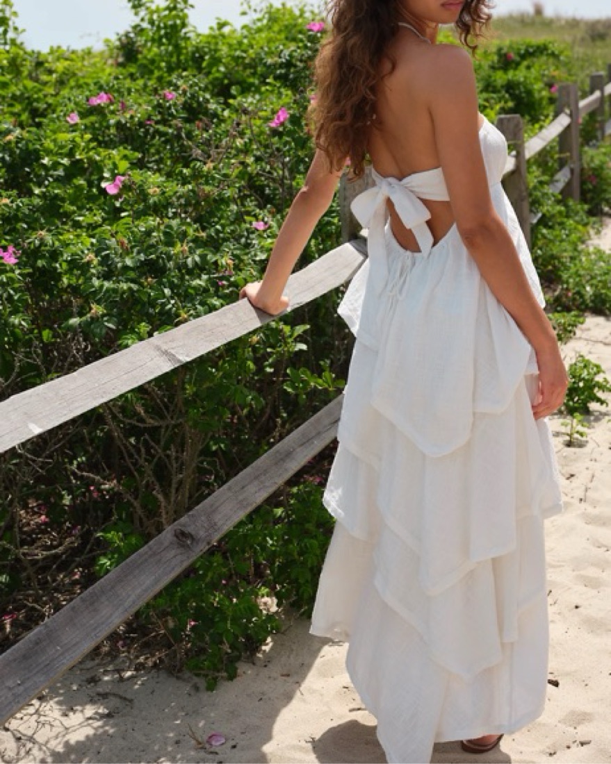 Free people sold out strapless adjustable tie back tiered maxi dress