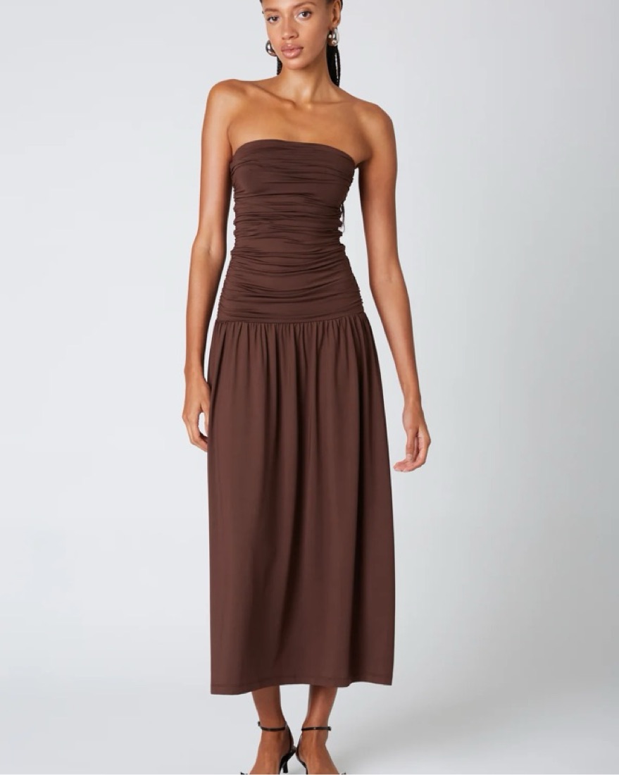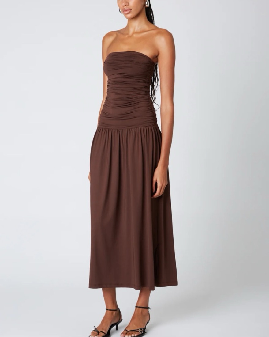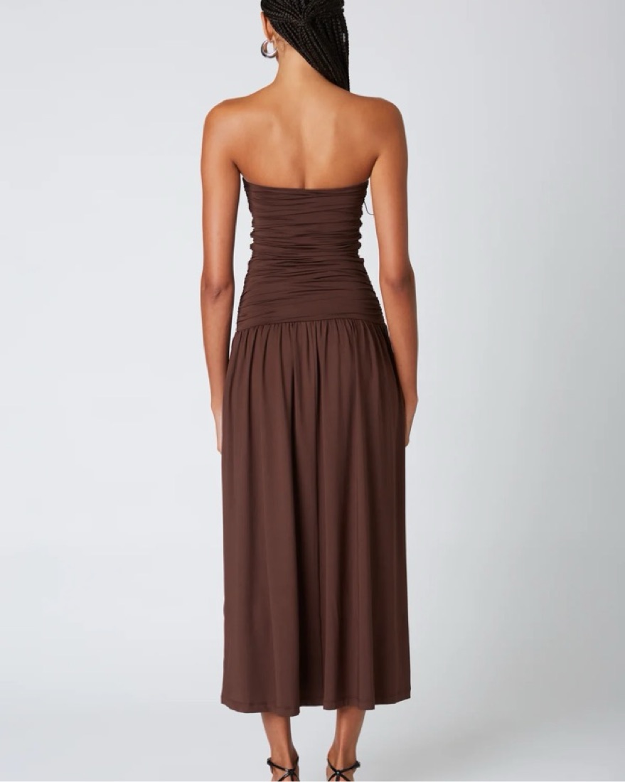 Size xs - Knit dropwaist strapless maxi dress featuring gathering on the sides and a flowy fit. Unlined.