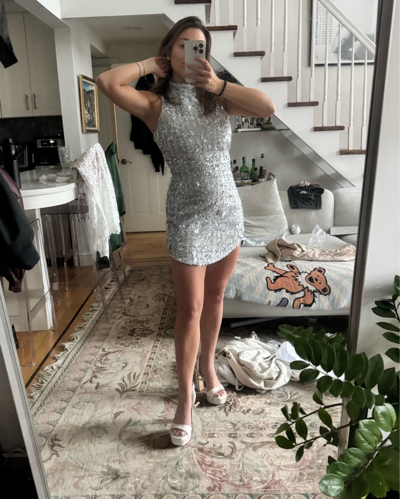 High neck Marshall mini dress in metallic. Wore it to my wedding as after party dress and absolutely loved. High neck. Only worn once and amazing condition