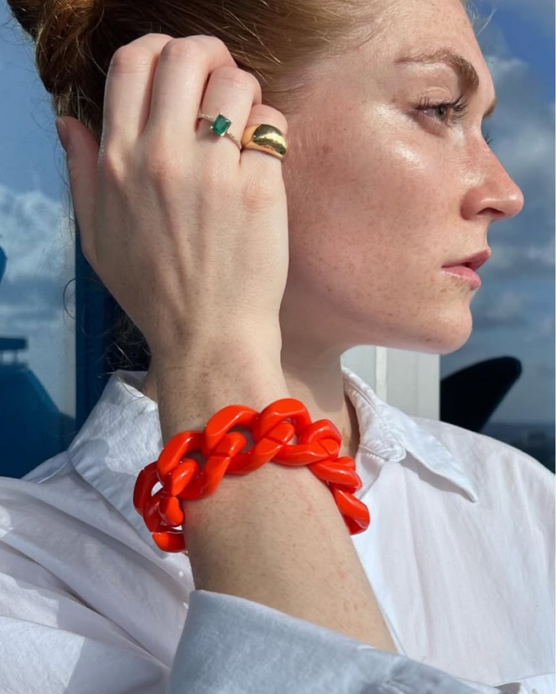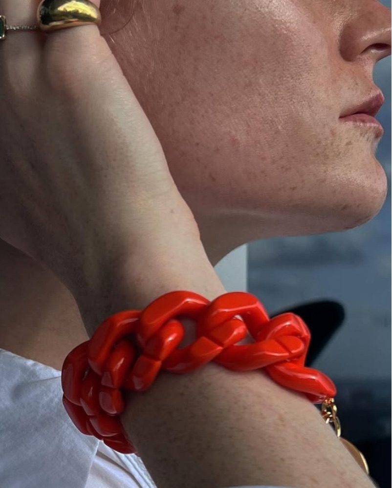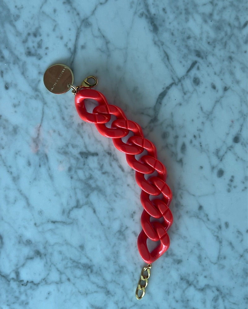 This bold and stylish chain link bracelet is the perfect accessory to elevate any outfit. It adds a touch of chic flair and color to your look! It’s more of a coral red color
