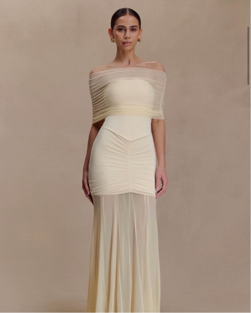 Caspian Slinky And Mesh Off Shoulder Maxi Dress - Ivory, size Small
