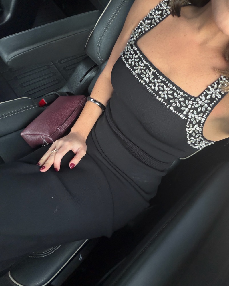 Worn once! Fits like a small bandage dress. Comes to almost ankles on a 5’1 height.
