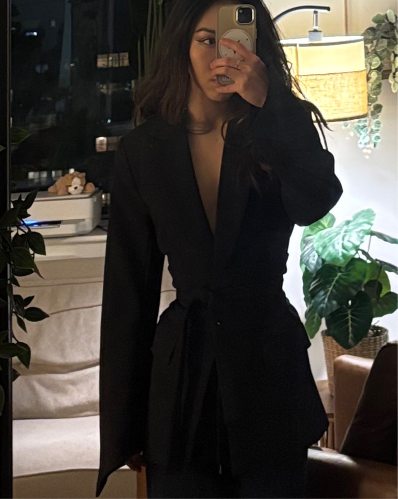 The iconic odd muse belted blazer! Snatch your silhouette with this tailored piece! Design has thoughtful details with the defined shoulder and sleeve shape. Can wear with any bottom, for a cool girl look I’d go with micro shorts 🔥 In excellent condition, fits true to size.