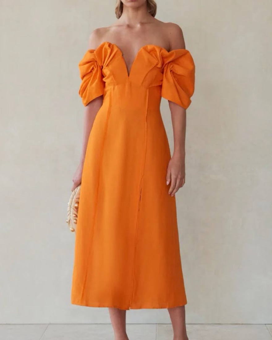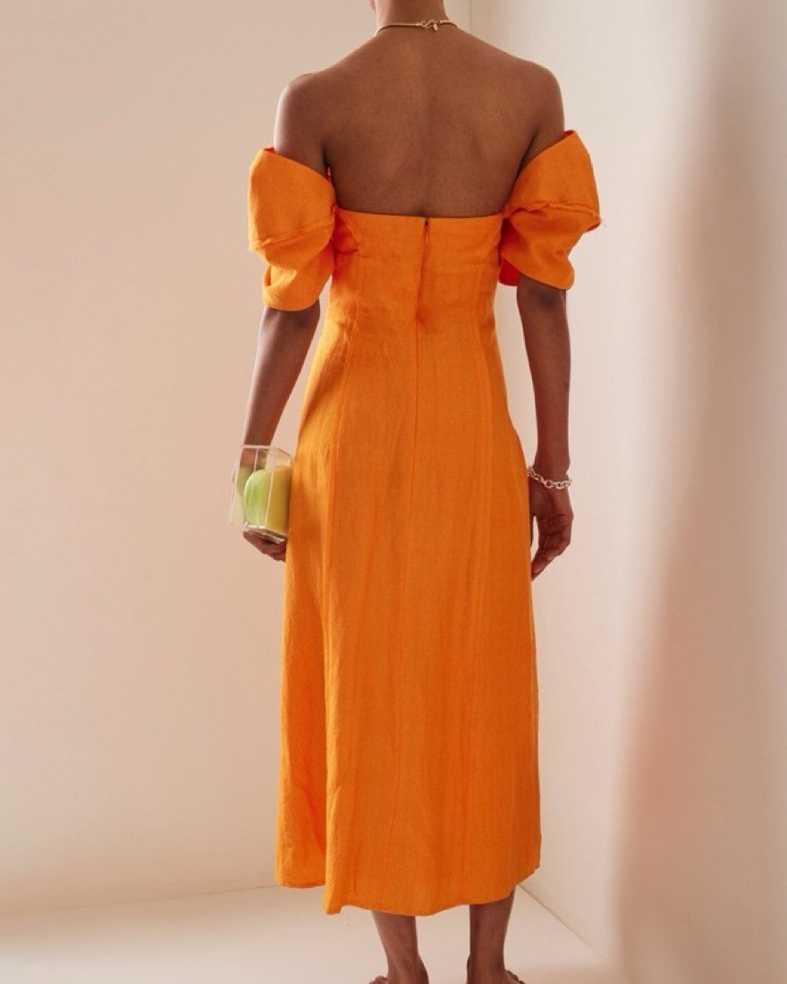 Orange midi off the shoulder dress. Never worn but runs a bit small!