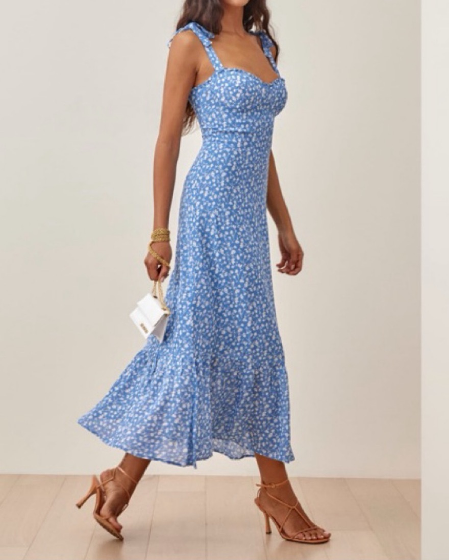 Blue Reformation Nikita Dress, only worn twice! Perfect for a spring wedding or a light blue theme.