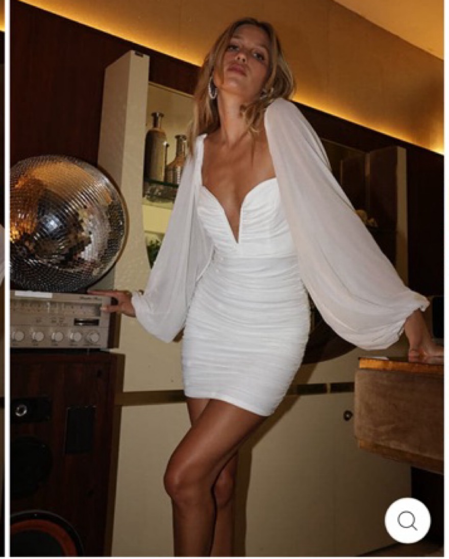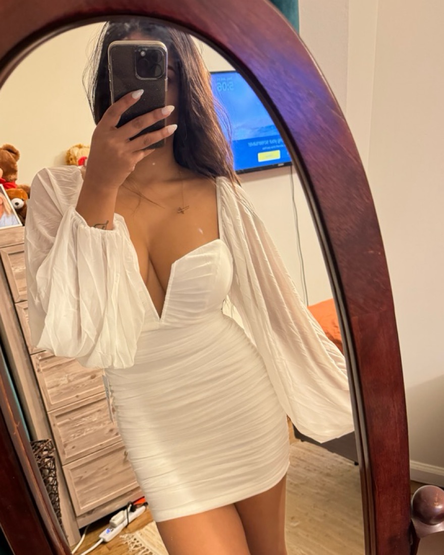 Brand New✨ Fits 4,6 best. This dress makes me feel like a goddess! Dry cleaning price is included, the sleeve material is very delicate please be careful 🫶🏽