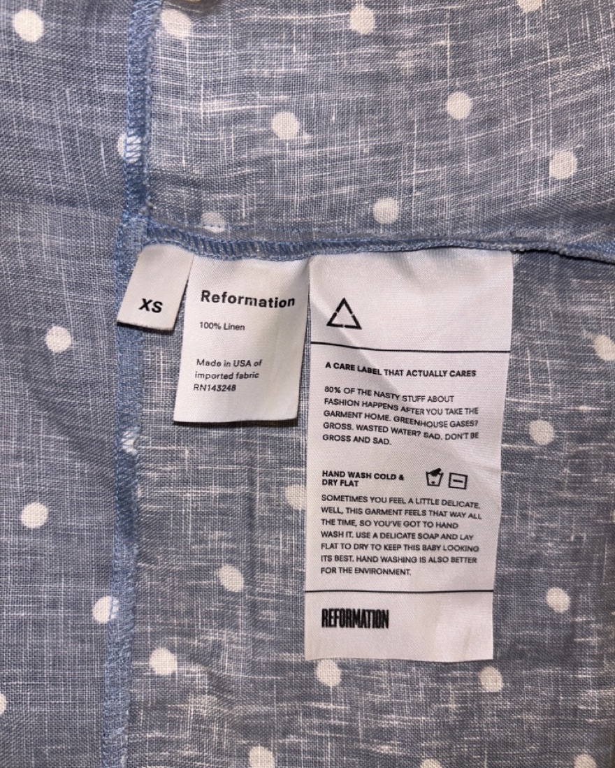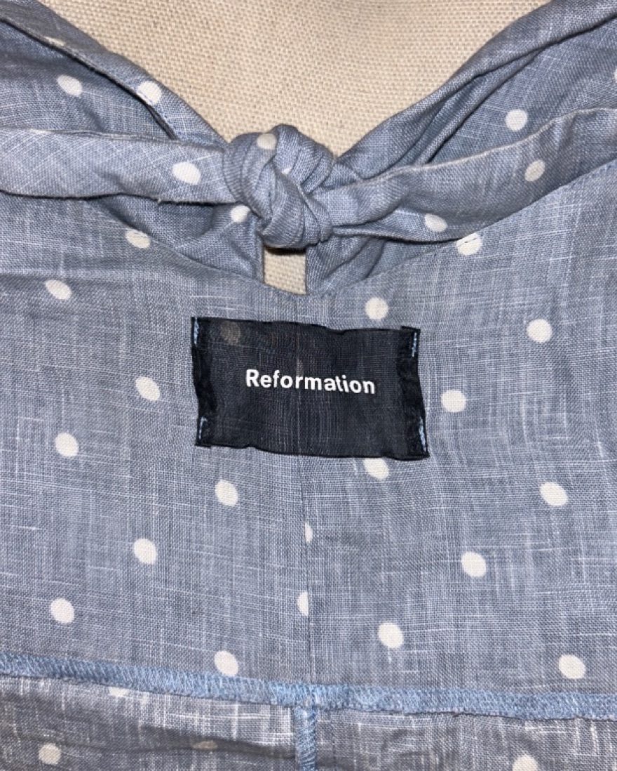 Reformation Chambray Linen Polkadot Top with tie front size XS