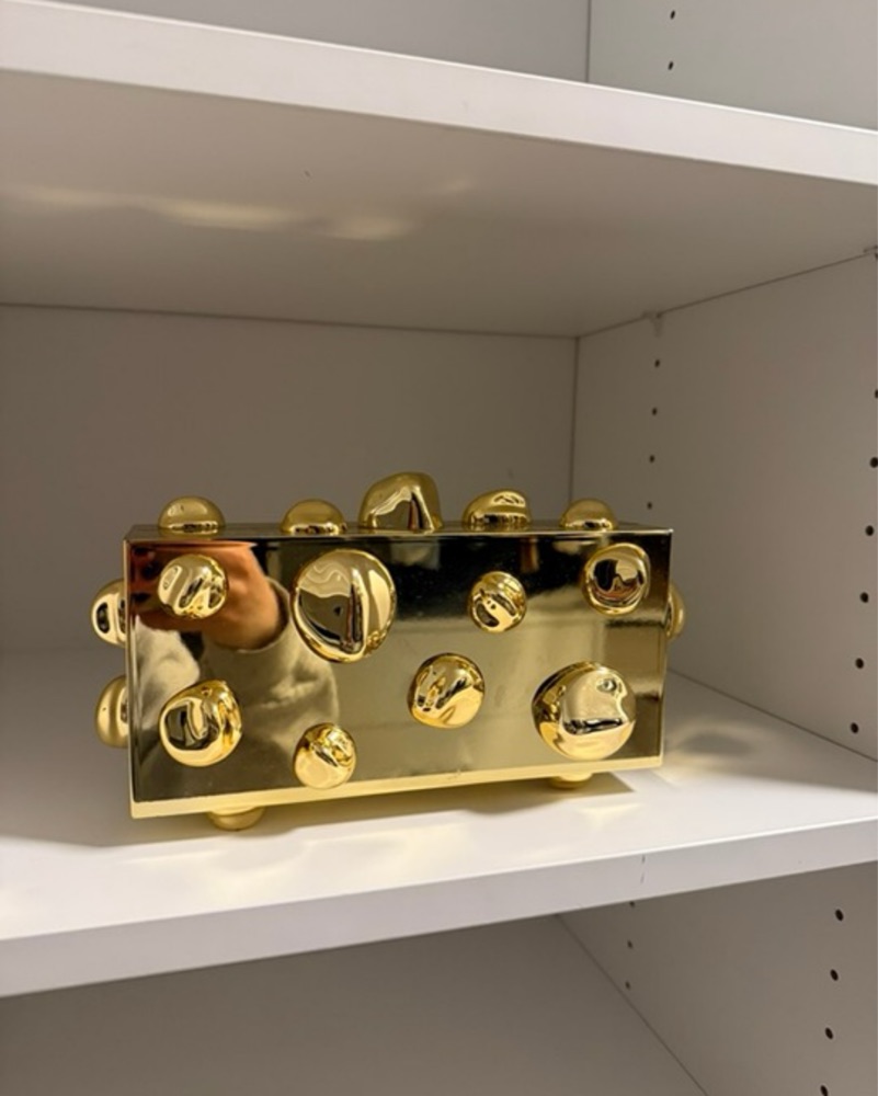Used once, in perfect condition Length: 8.25in / 21cm Height: 4in / 10cm Depth: 2in / 5cm ABS plastic Abstract orb details Push-button closure Lining: Textile Weight: 21oz / 0.6kg Retails $498