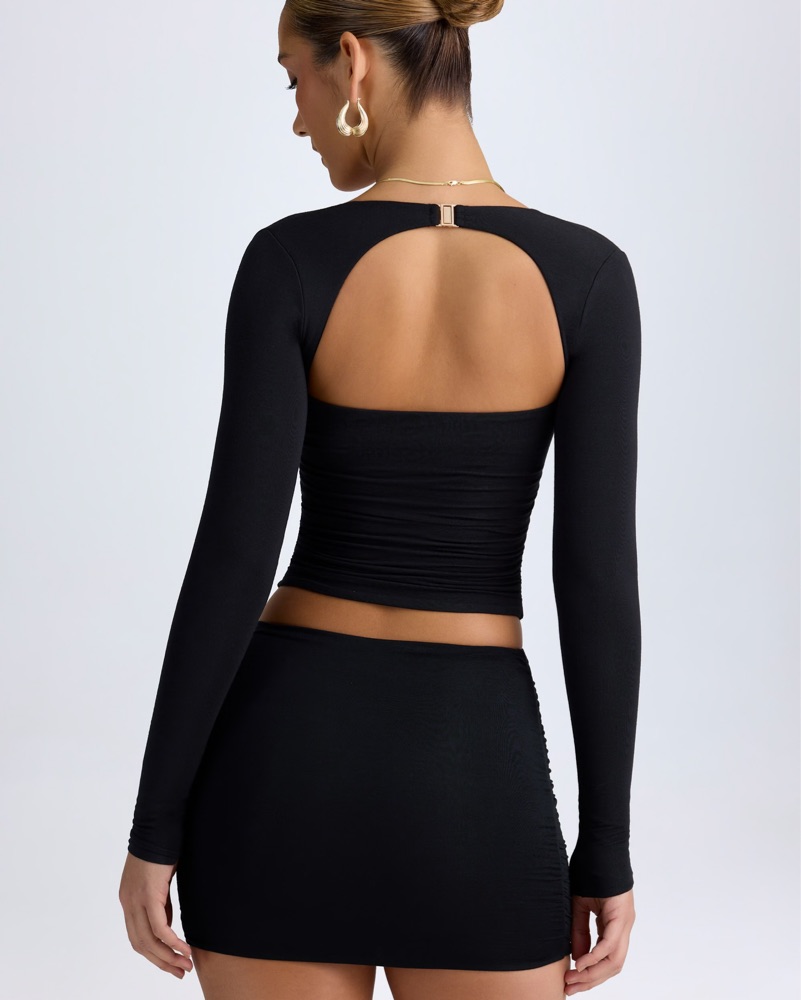 Modal Halterneck Ruched Top in Black