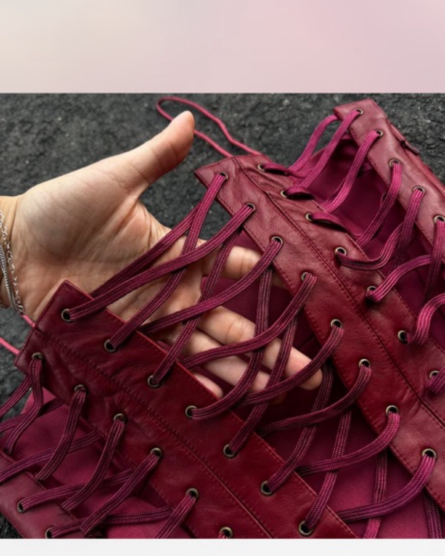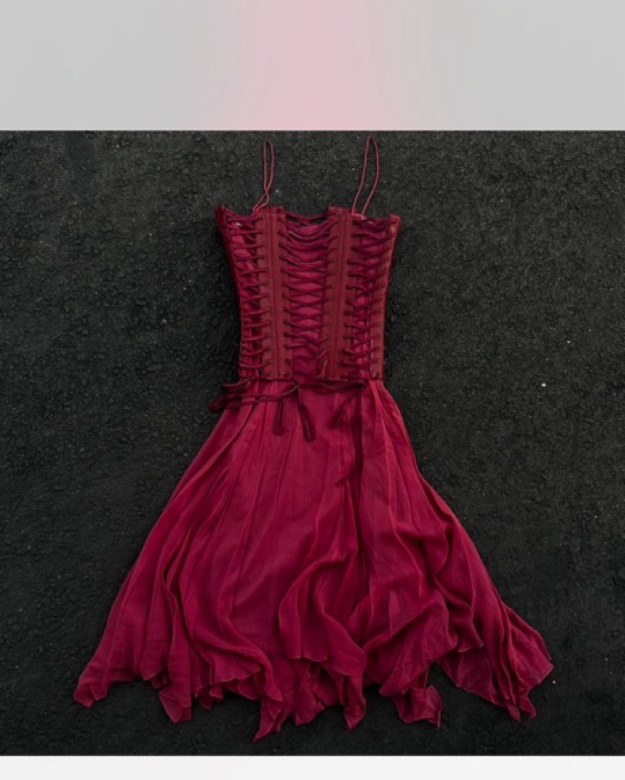 STUNNING vintage mandalay corset dress - labeled a size 8 but fits like a 4-6 - camisole strap burgundy lace up bust with a flowy bottom. Truly stunning and super rare.