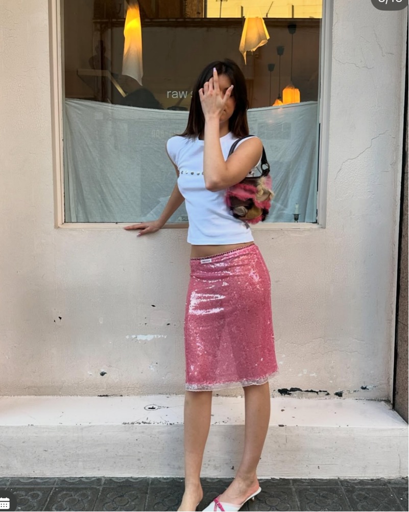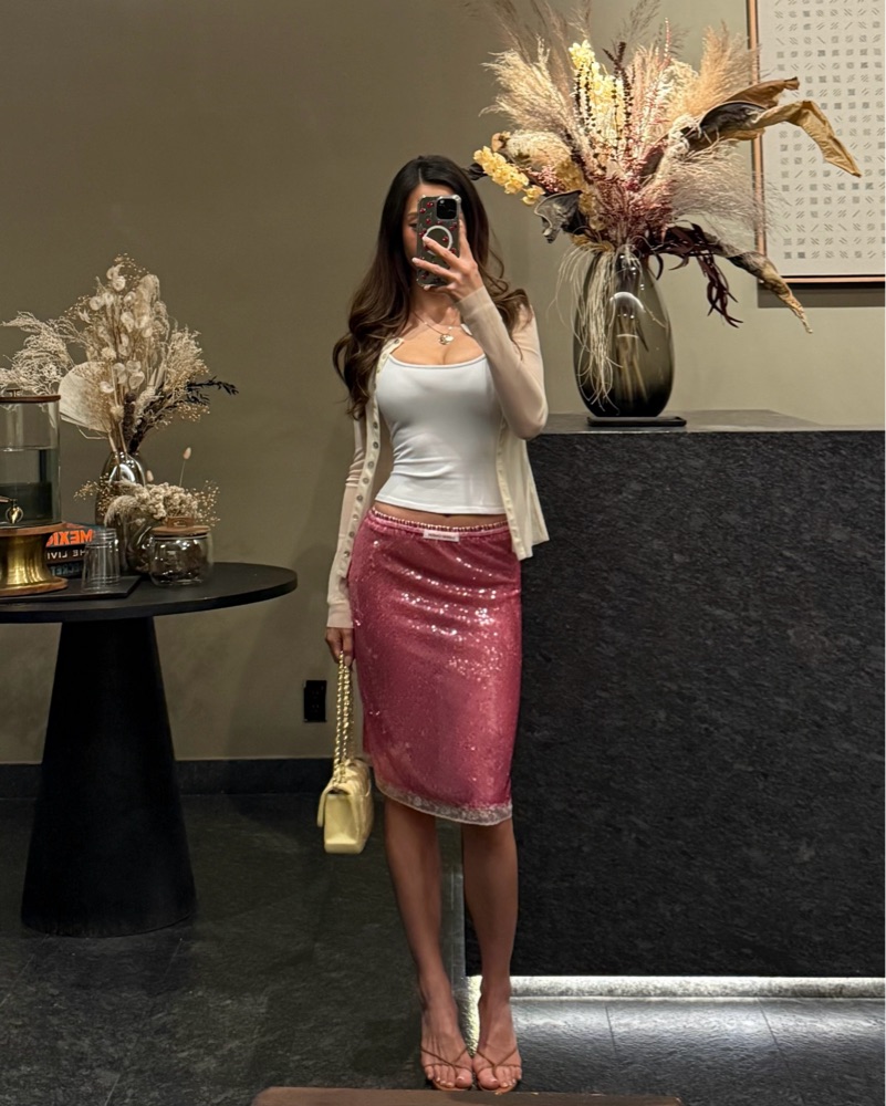Pink sequin midi skirt