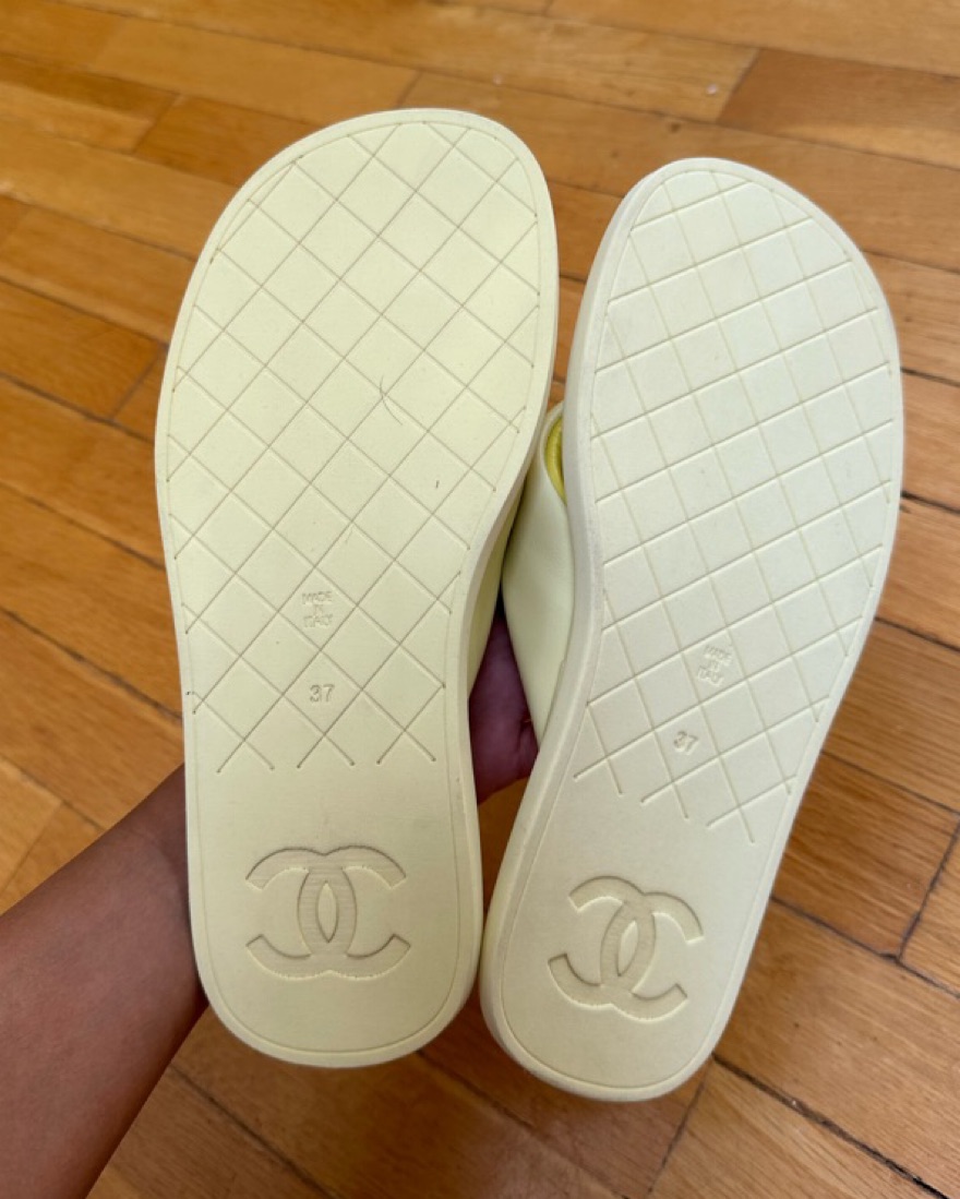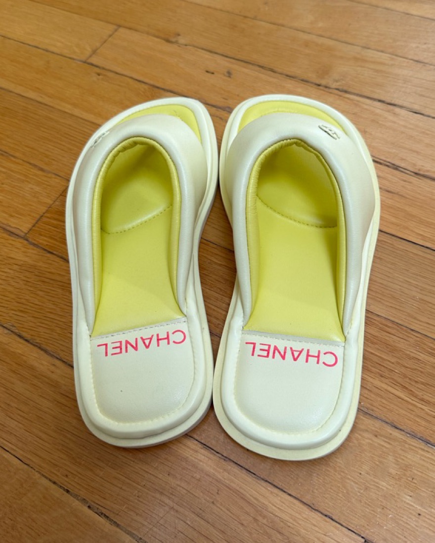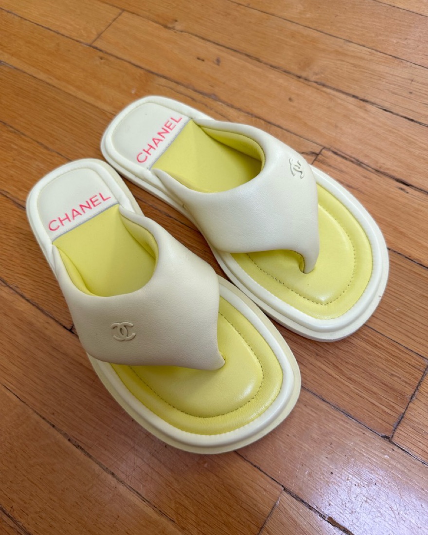 Chanel Yellow Lambskin Padded Pool Thong Logo Mule Slide Flat Sandal