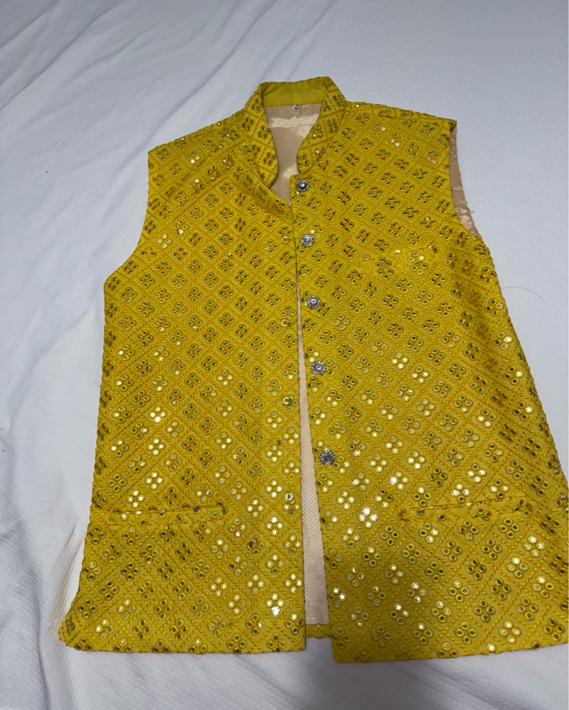 This shimmering gold sequin-embellished vest is perfect for Indian/pakistani/bangladeshi henna/ haldi/ mayoun