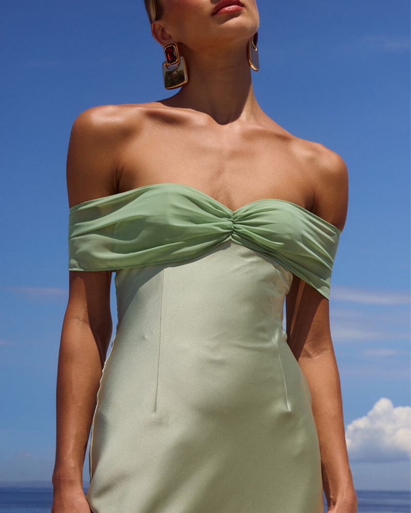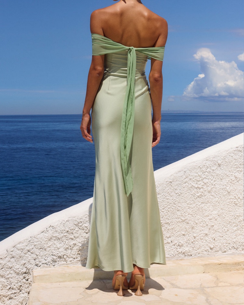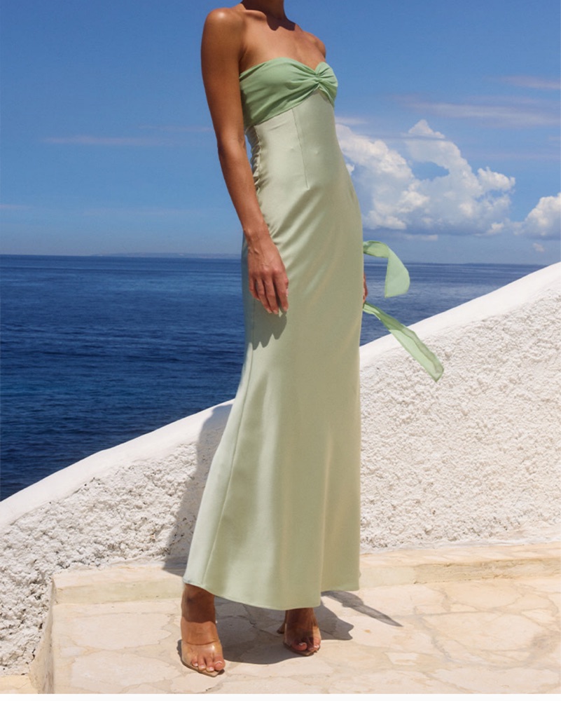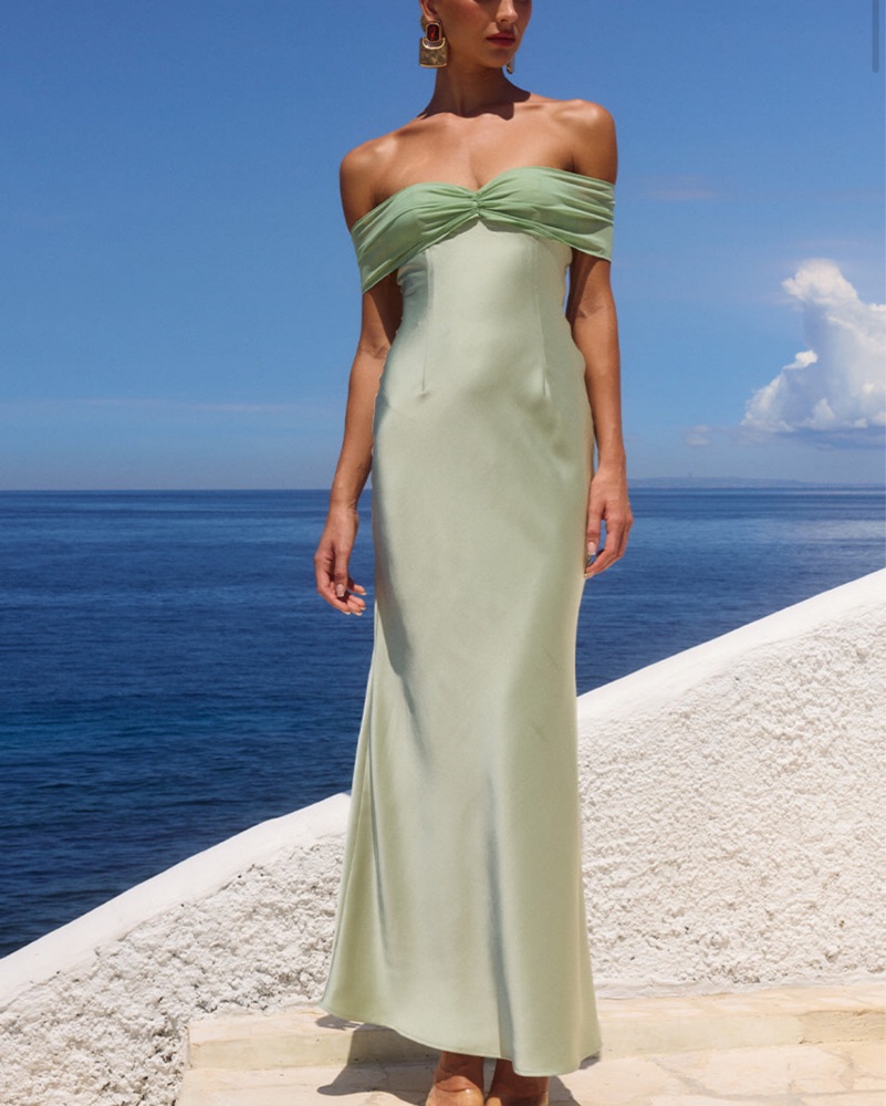 Never worn, new with tags! Color is key lime, size small (can probably fit small/medium). Timeless elegance, our Kadie Maxi Dress features contrast textures with a silky sash that can be draped off the shoulder or tied tight around the bust.