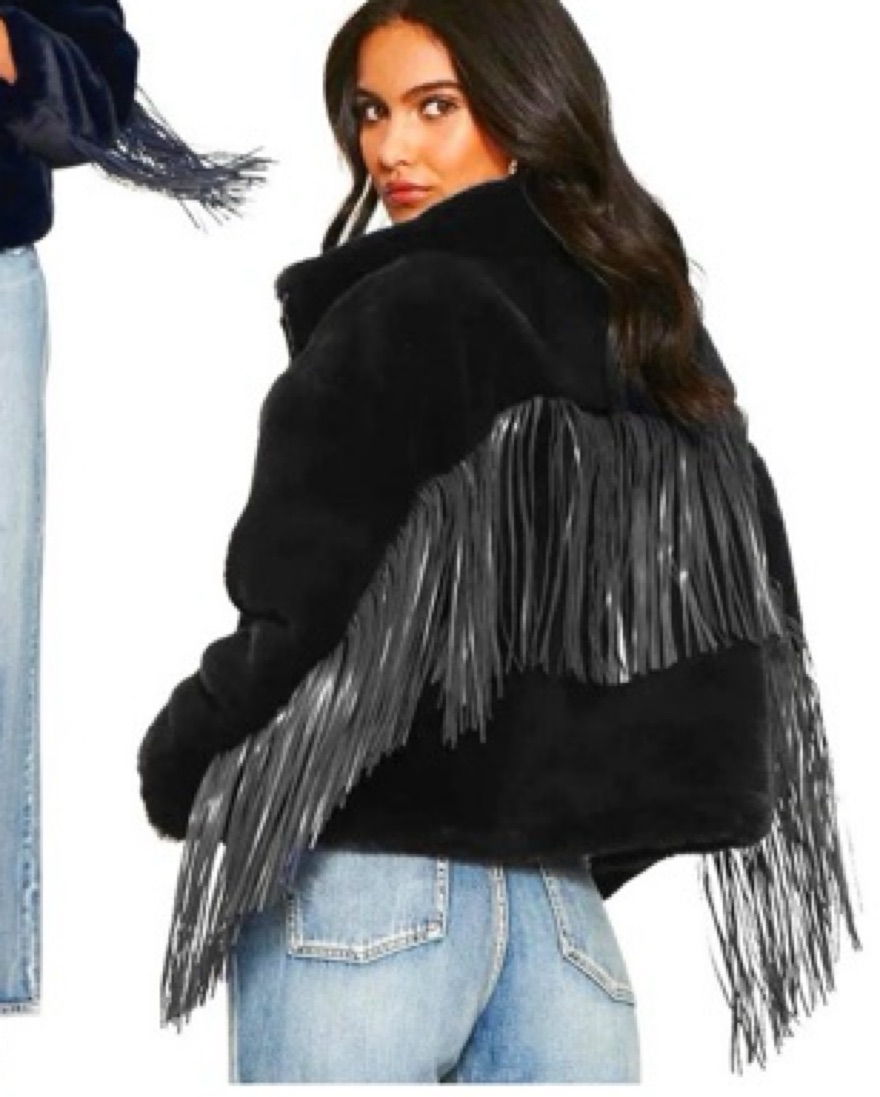 The cutest coat for ski szn!! Fits a little oversized but perf for bundling. Black fur and fringe with silver zipper - business in the front, party in the back 🤠 brand is blue revival