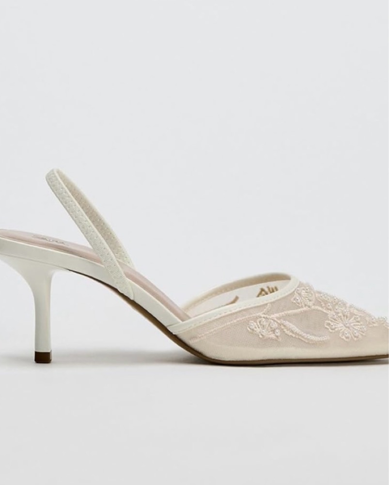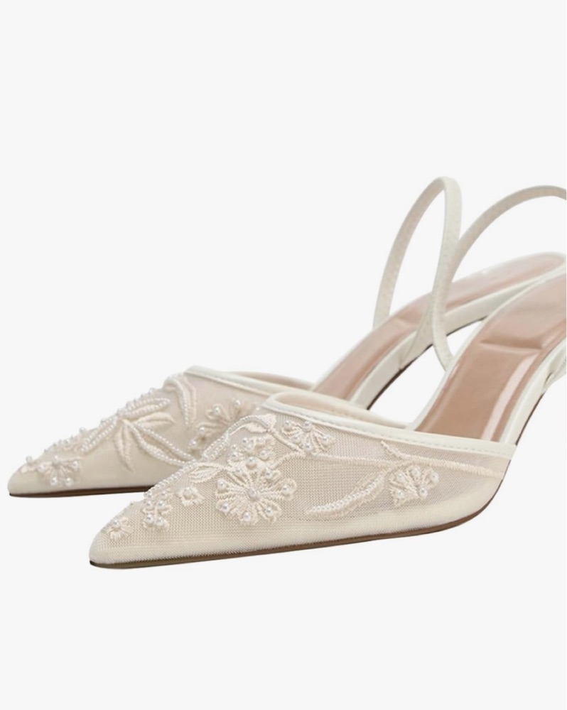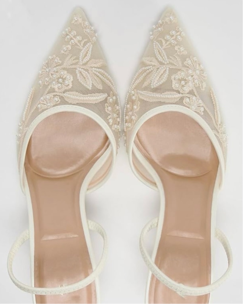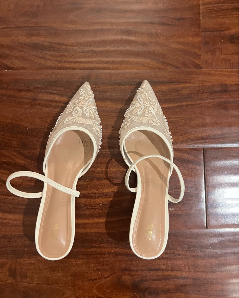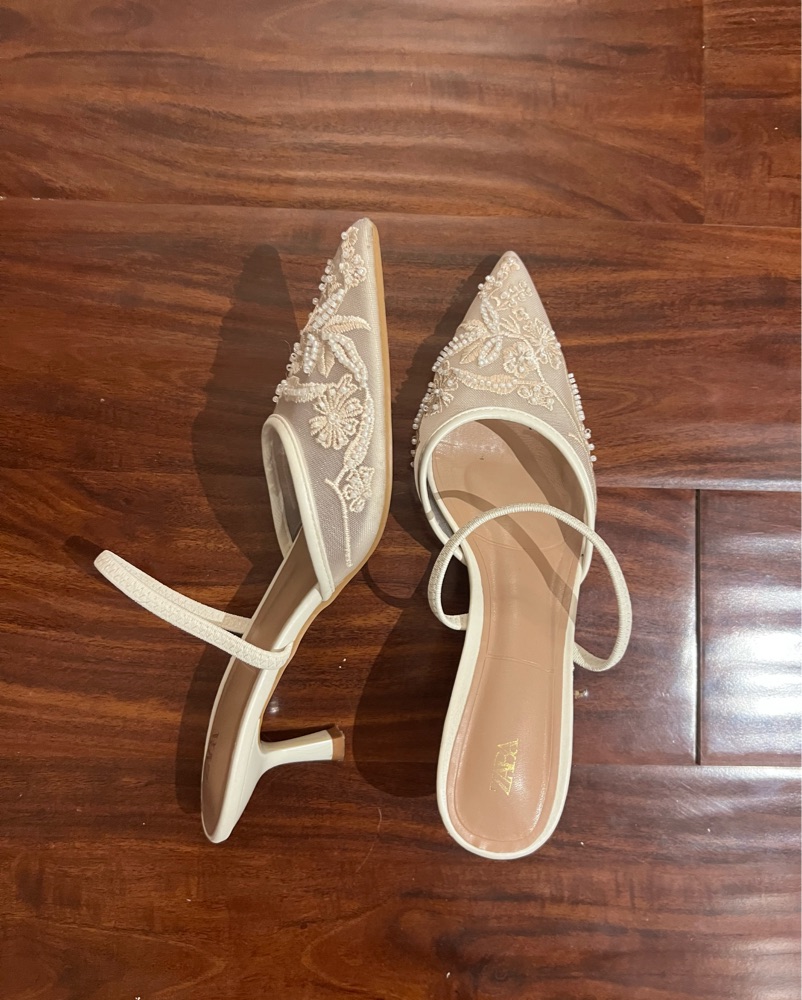 These luxurious slingback heels are the perfect touch of elegance for any formal occasion. The intricate floral embroidery adds a sophisticated flair! Very comfortable, I’ve walked across the Brooklyn bridge in them!! Only worn a handful of times.