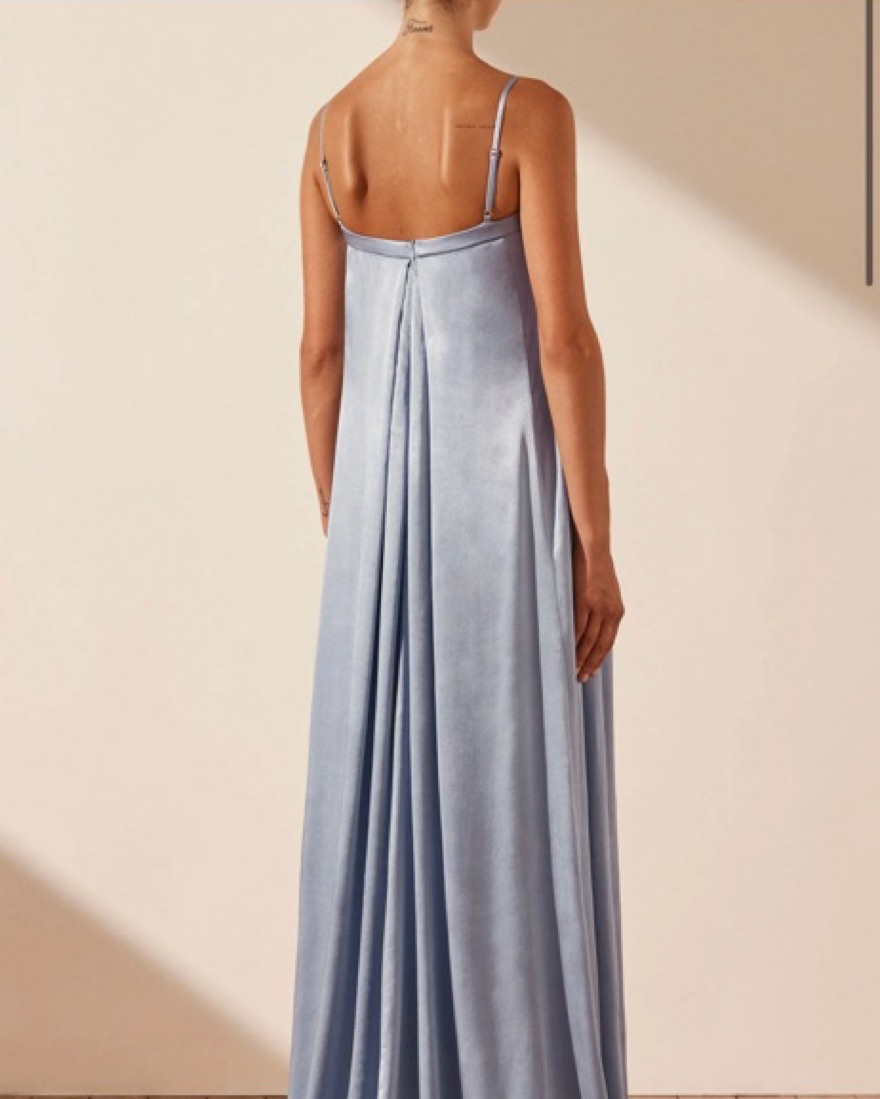 This dress is so beautiful and elegant! It’s only been worn once and is in perfect condition. It is the perfect dress for a wedding or formal event!