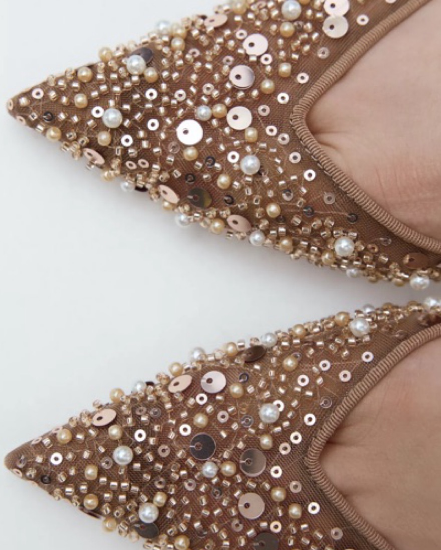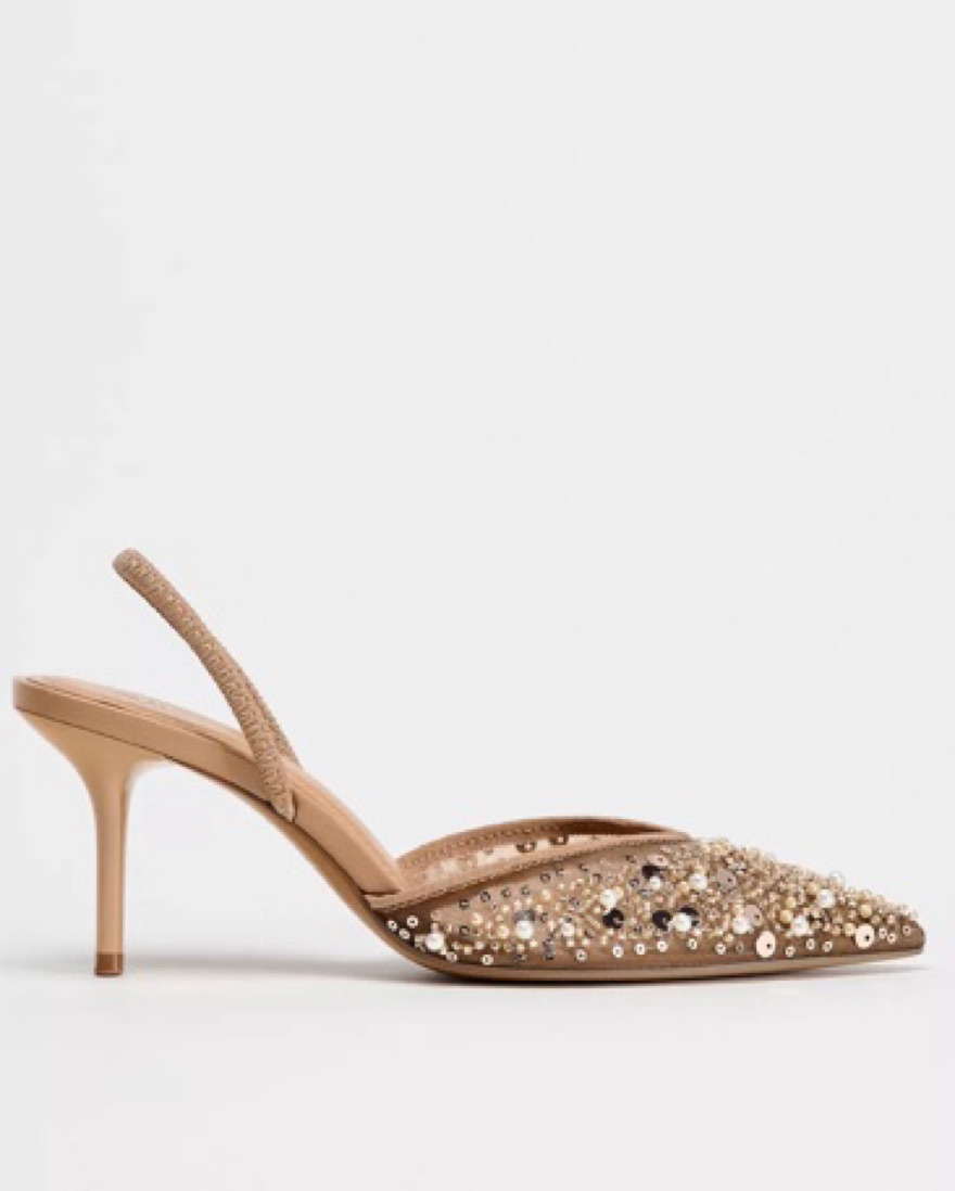 Shimmery Pailette Nude Heels by Zara - Pickle