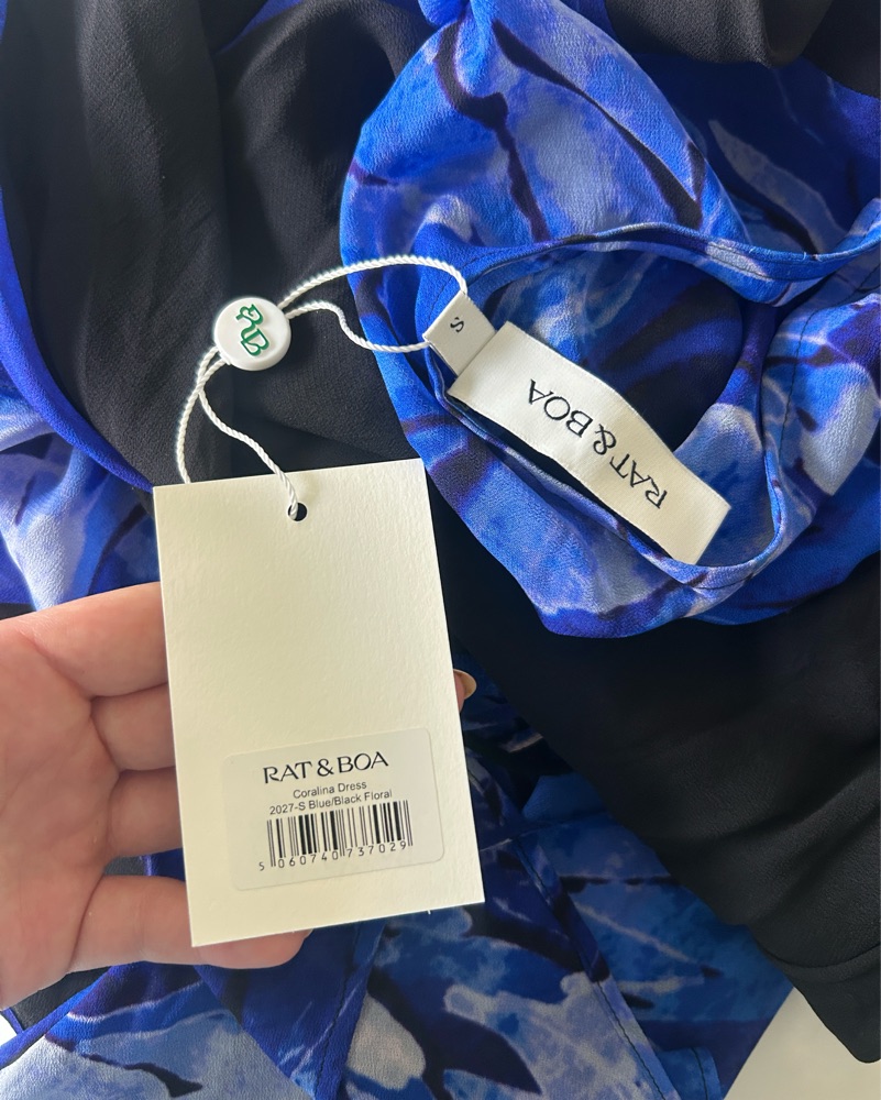 Brand new and never worn. Super elegant. I’m obsessed with this dress it is so flattering but I haven’t found a reason to wear yet. Hopefully it can get some use before I find that day! (I’m 5’5 and it’s very long on me, even with 3 inch heels)