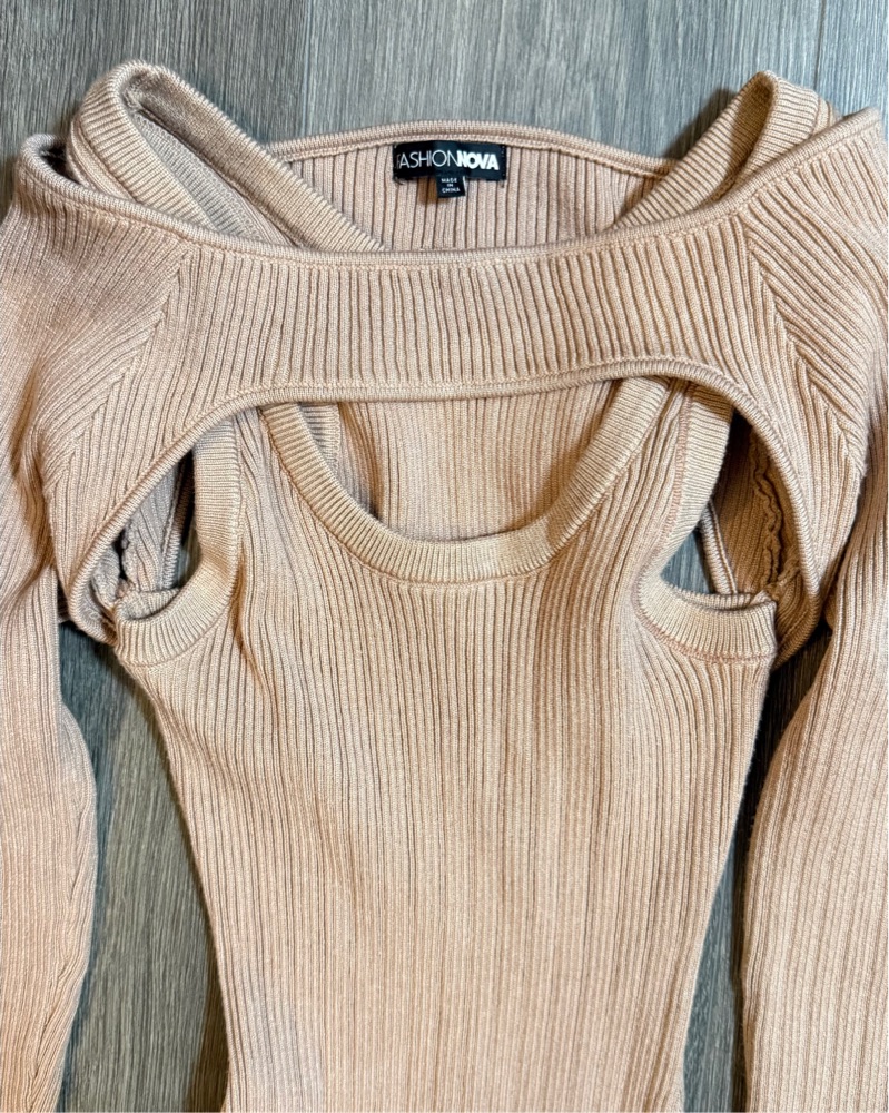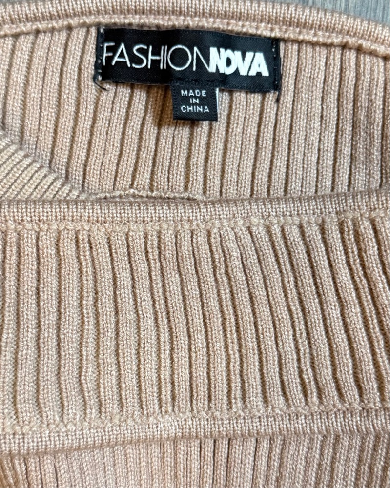 Fashion Nova Beige Stretch Knit Midi