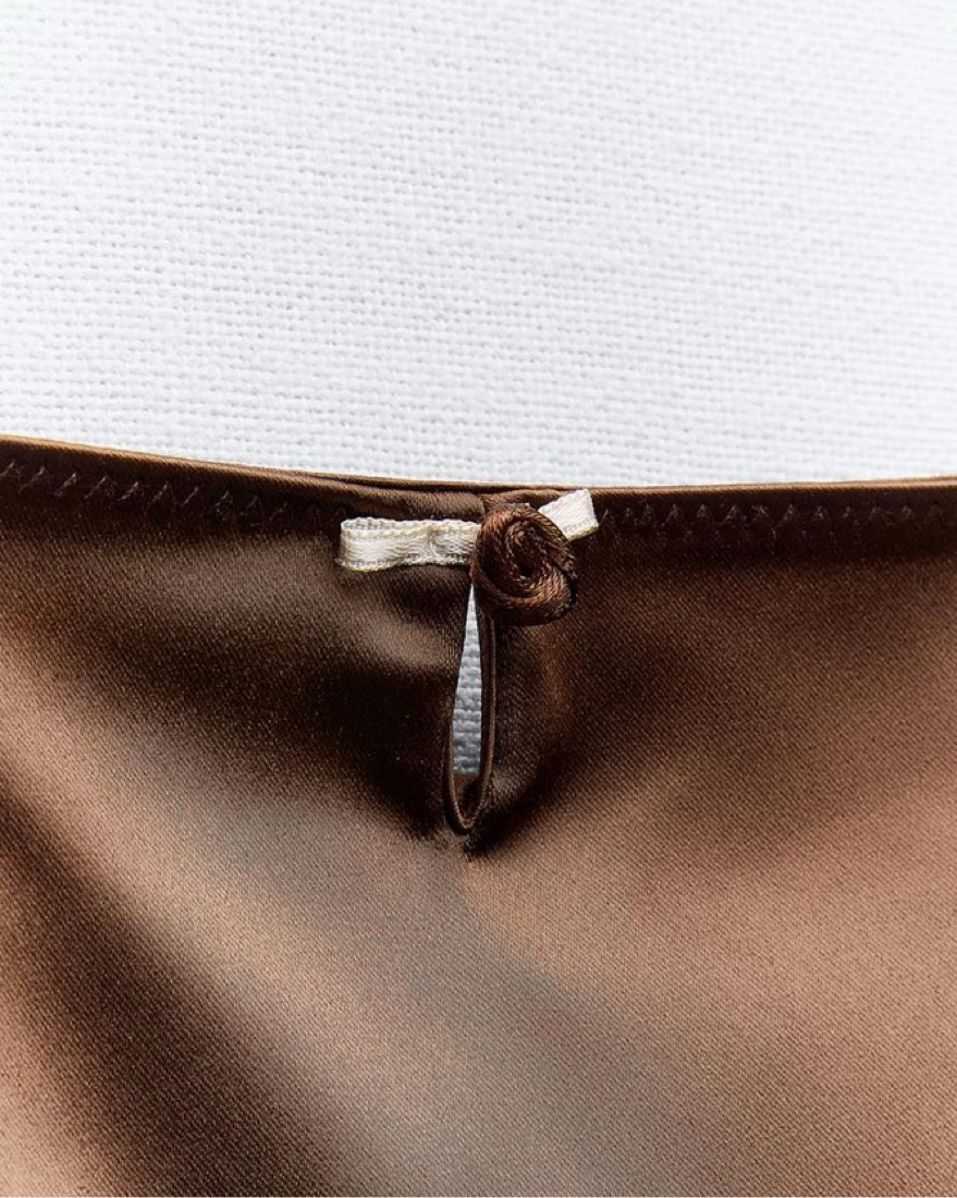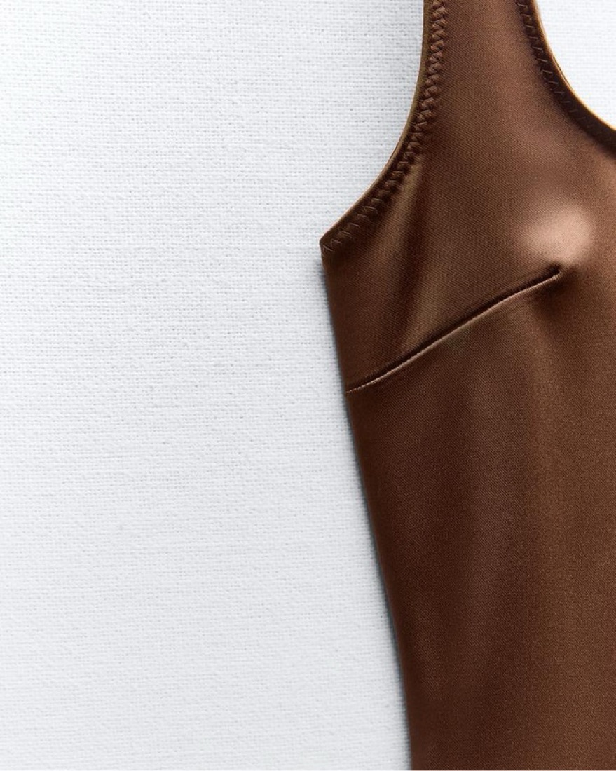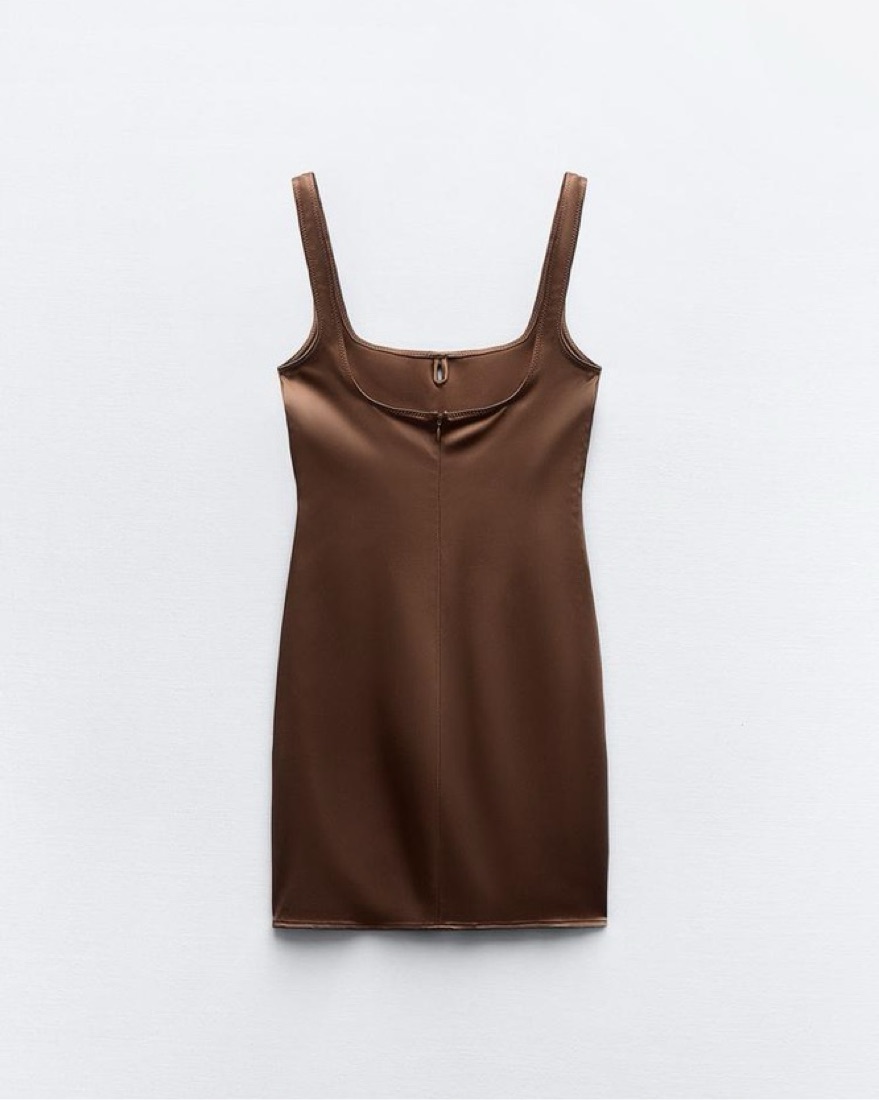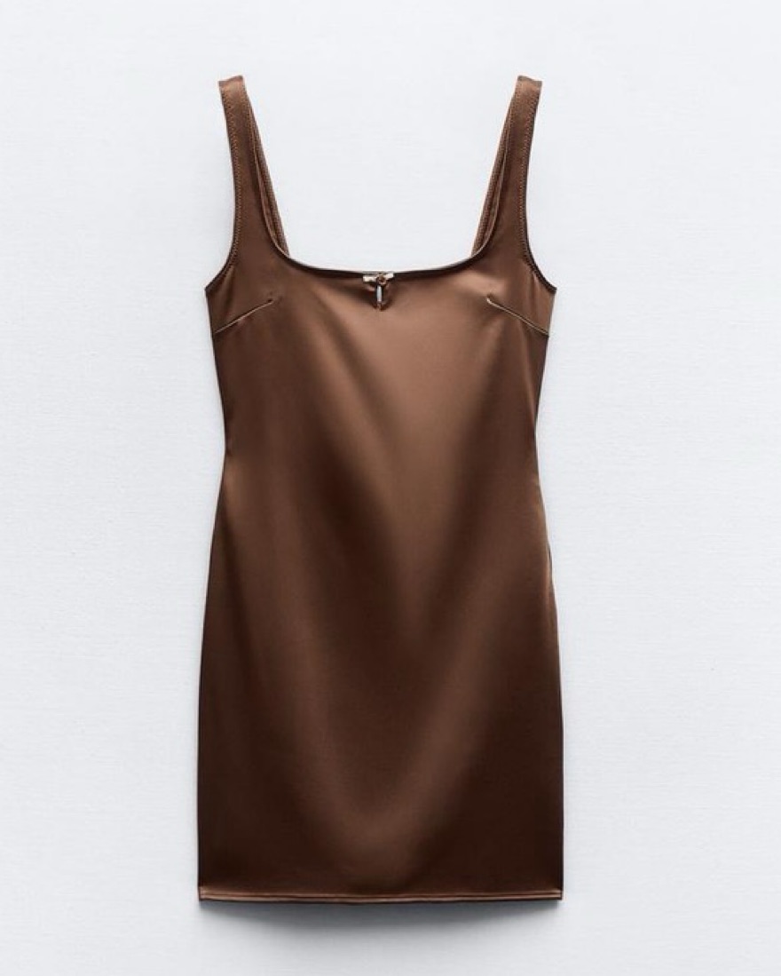 Zara Brown Satin Slip Mini Dress