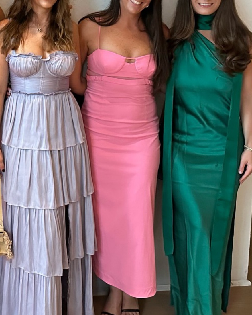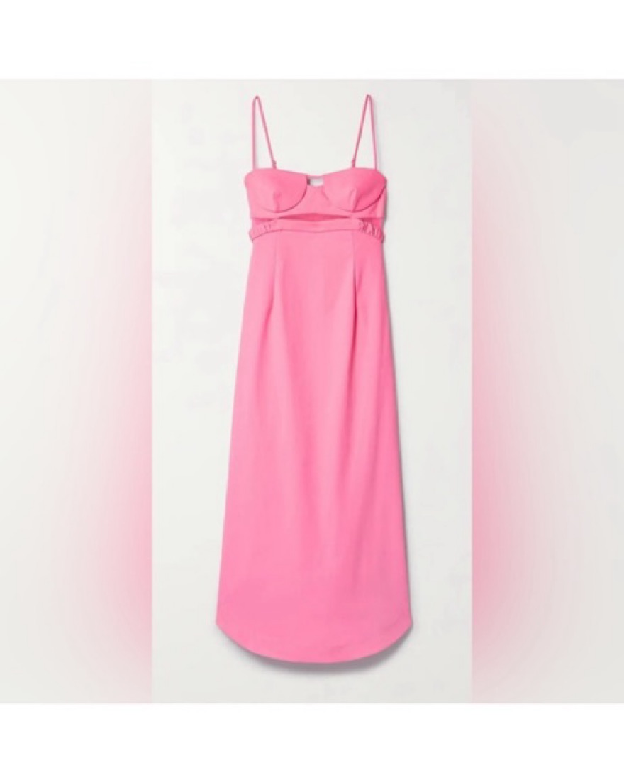 Bubblegum Pink mesh trimmed stretch poplin midi dress. Worn once for a wedding. Super comfortable, adjustable straps.