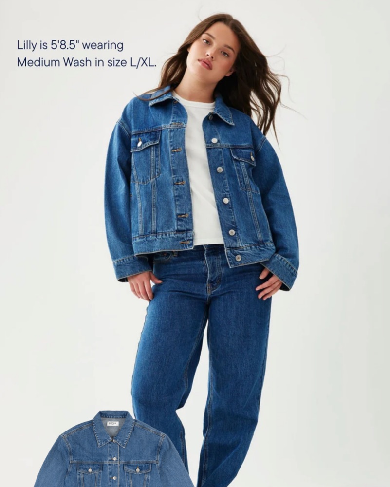Parke Oversize Denim Jacket in medium wash size S/M