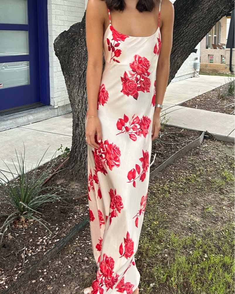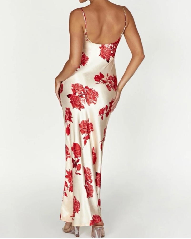 Maxi satin dress, adjustable straps, worn twice