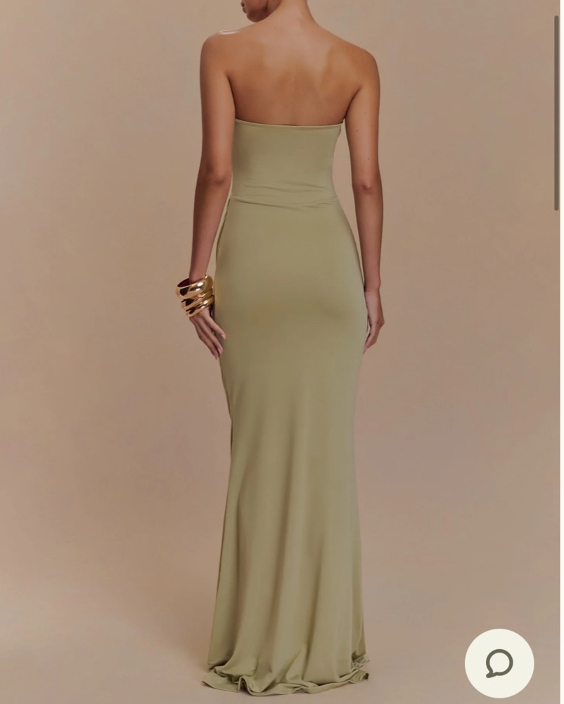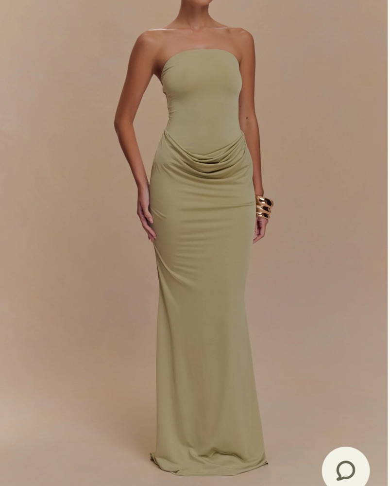 Madison Strapless Slinky Maxi Dress by Meshki - Pickle