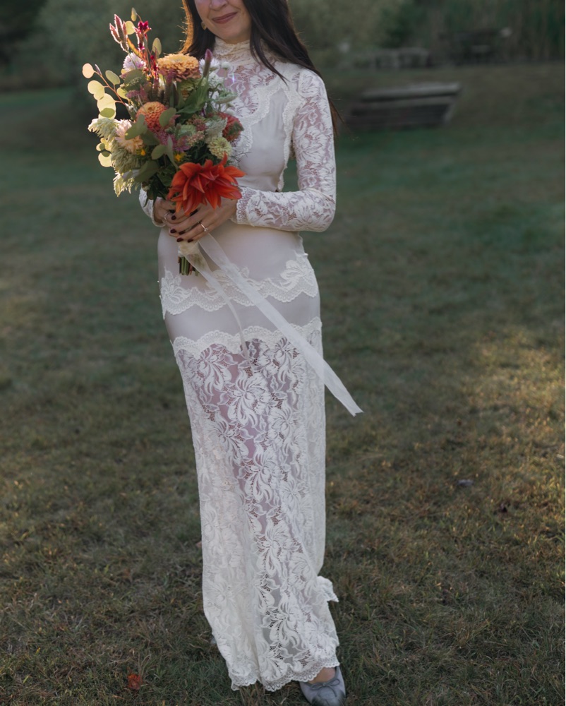 *MUST RETURN DRY CLEANED* Size 40. 5'7 size 6 for reference. This stunning lace wedding dress exudes romantic elegance. It would be perfect for a garden or outdoor wedding ceremony.
