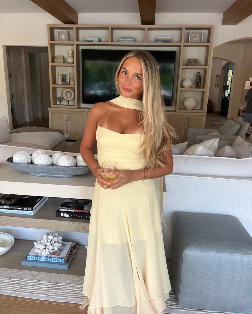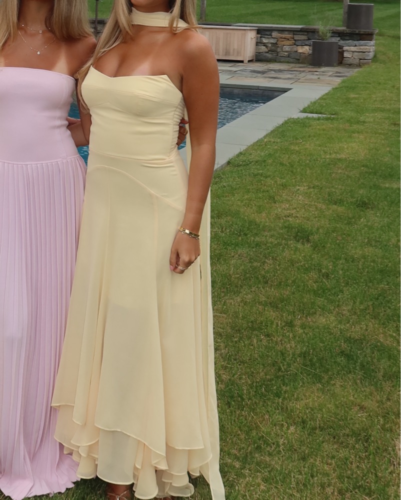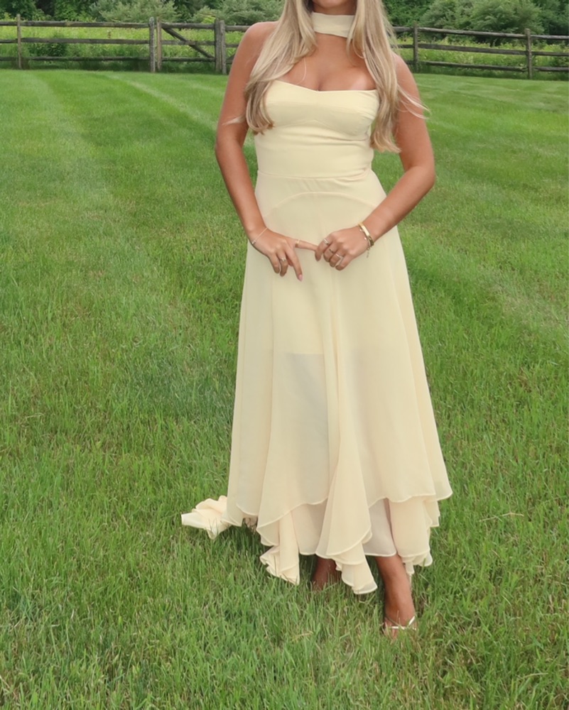 ๐๐gorg butter yellow dress. Size XS but took in the back a smudge to hold me in tighter. Since it is a long dress and light color i kindly ask for you to dry clean it / will charge for dry cleaning if it gets dirty. I wore this to a summer wedding and engagement party and got so many compliments!
