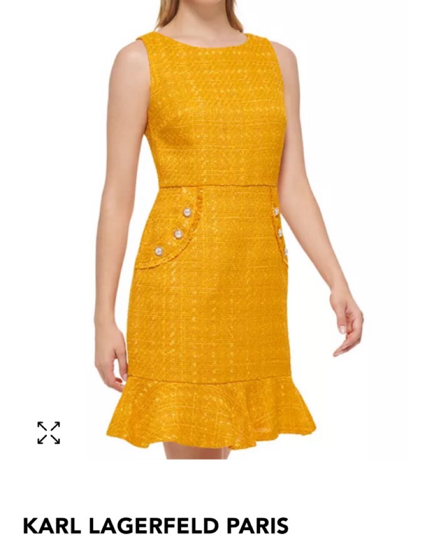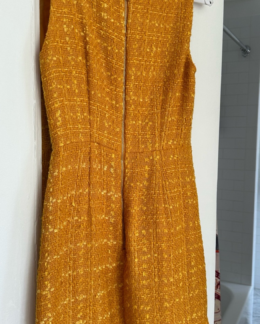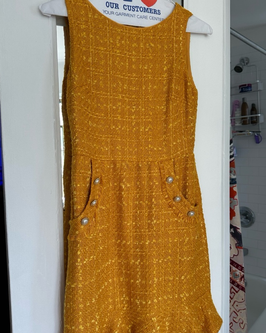 Golden yellow tweed flounce dress