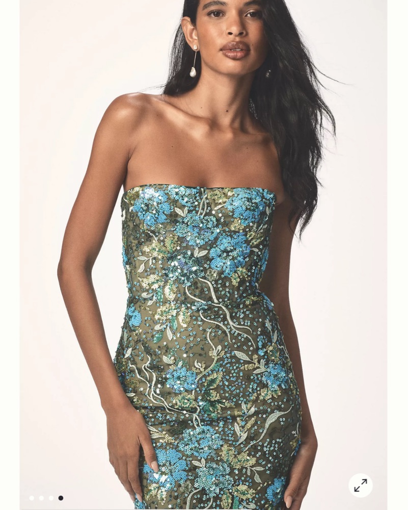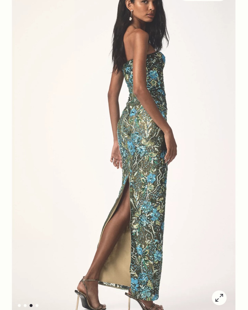 This captivating maxi dress is perfect for a glamorous event. The intricate floral sequin pattern creates a mesmerizing look that is sure to turn heads. I have a S and XS listed!