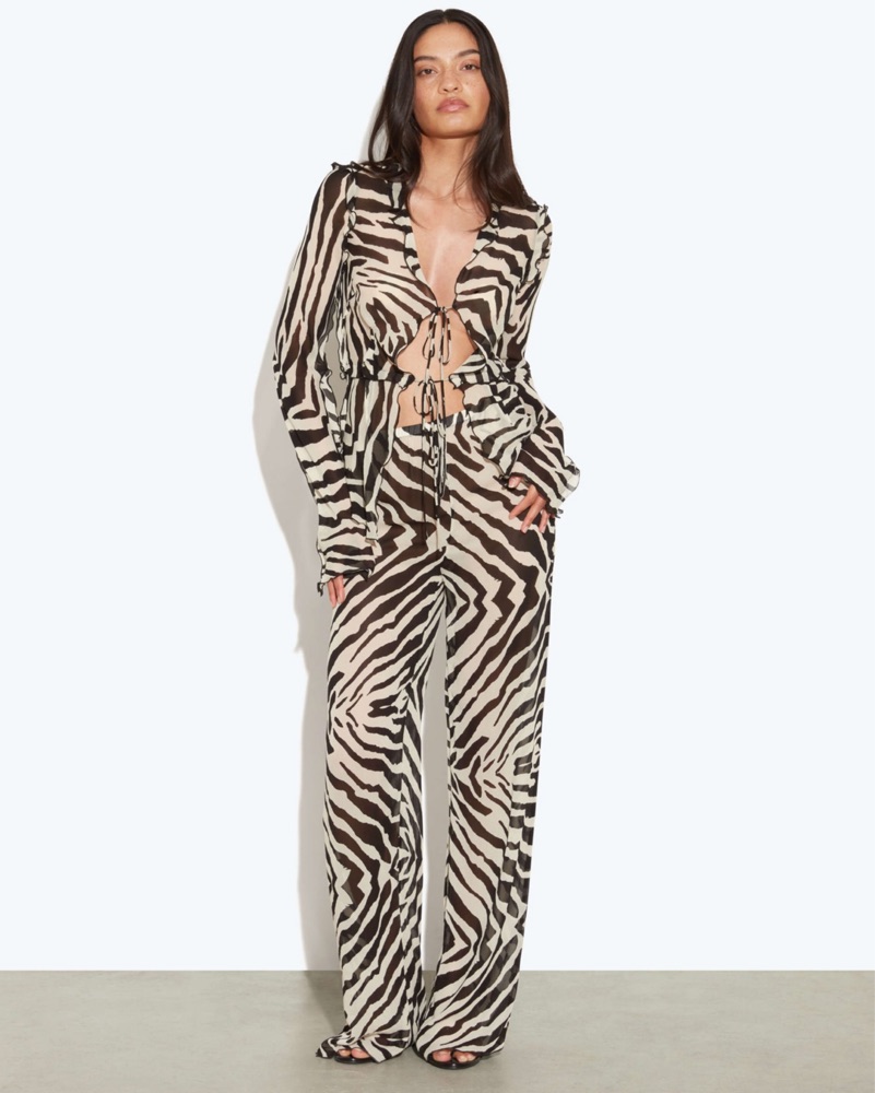 Rat & Boa zephyr blouse and zaelia trousers, renting as a set! Perfect for tropical vacations or a night out