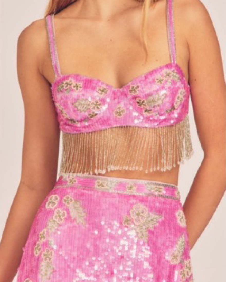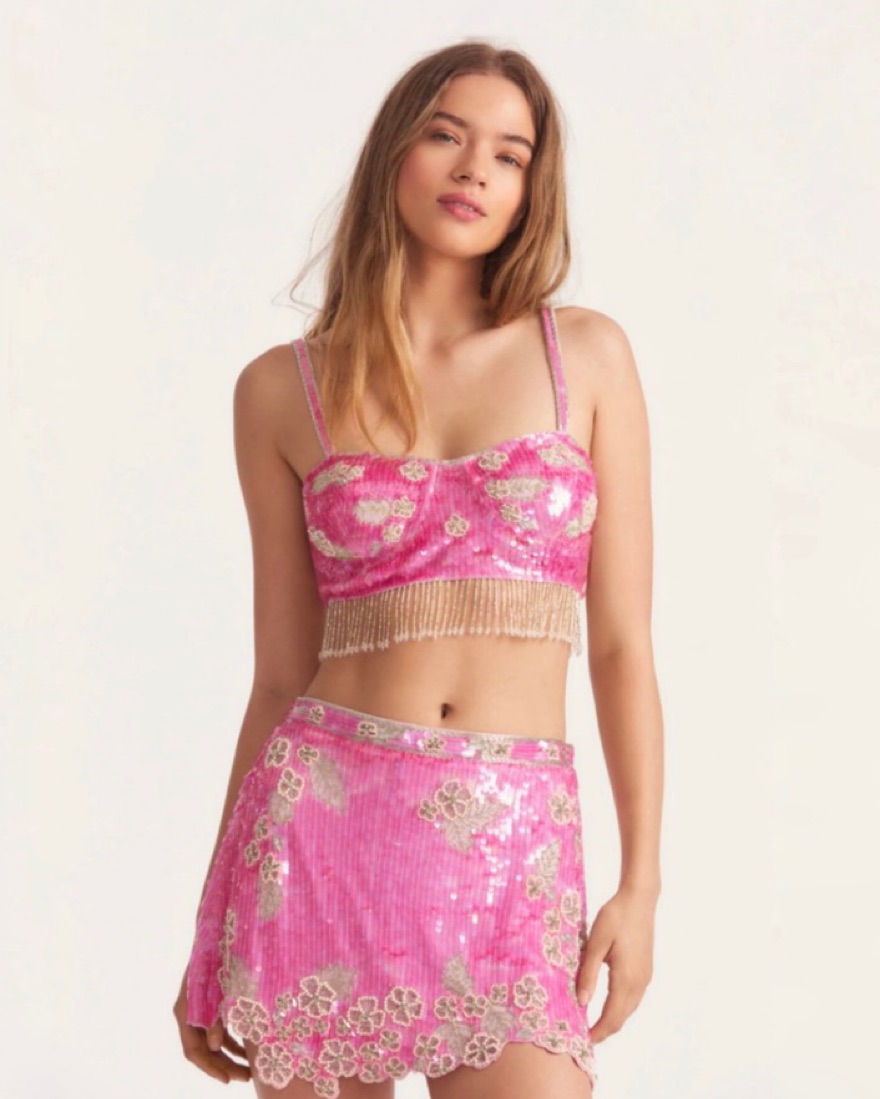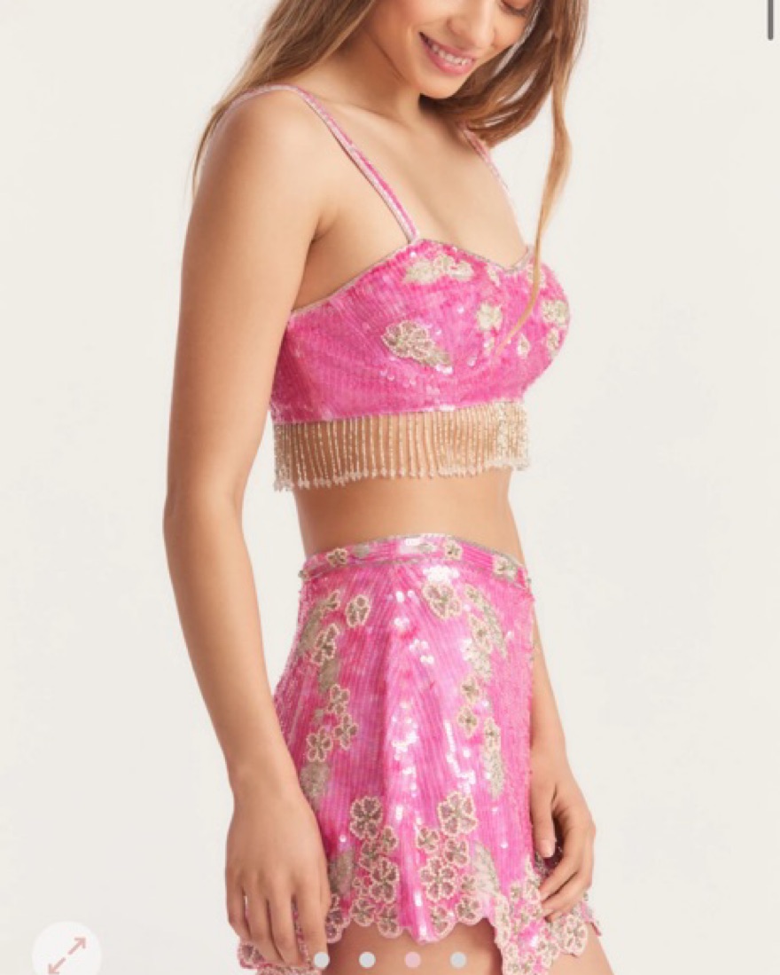 LoveShackFancy Beaded pink set in a size 4 note - item has lot of sequins missing and beads from wear, fair condition but available to rent if you are okay with this. Very delicate material
