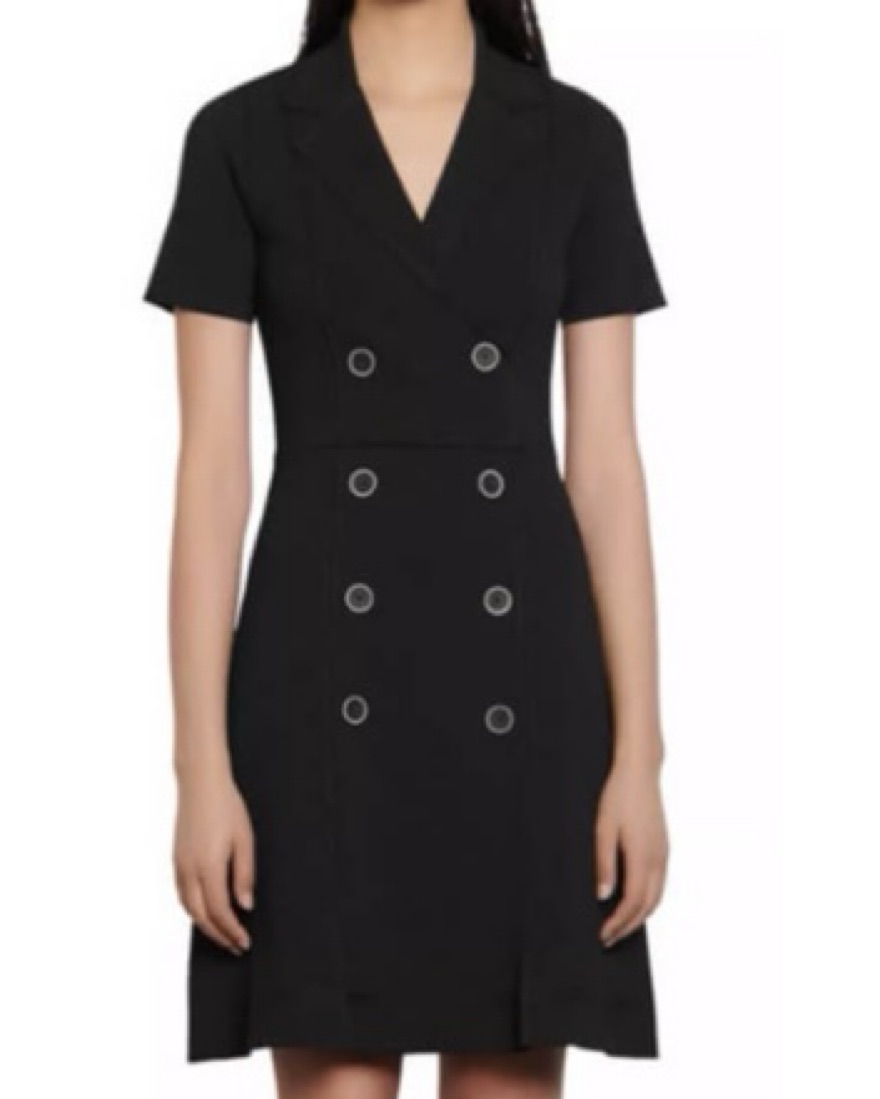 Sandro double breasted button with notch lapels with black and white buttons. Perfect for a work event or dress it up for date night.
