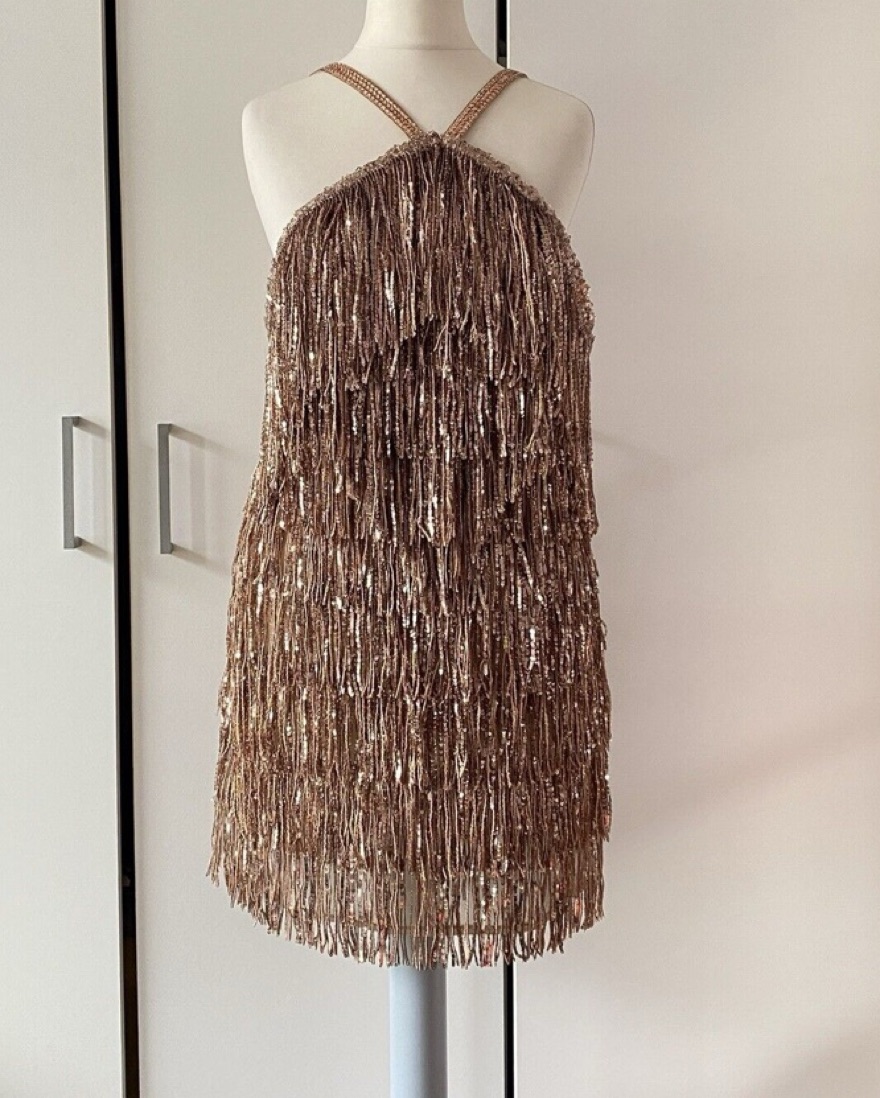 Rose Gold Mini Dress from Bronx and Banco. Adjustable beaded straps. Only worn once.