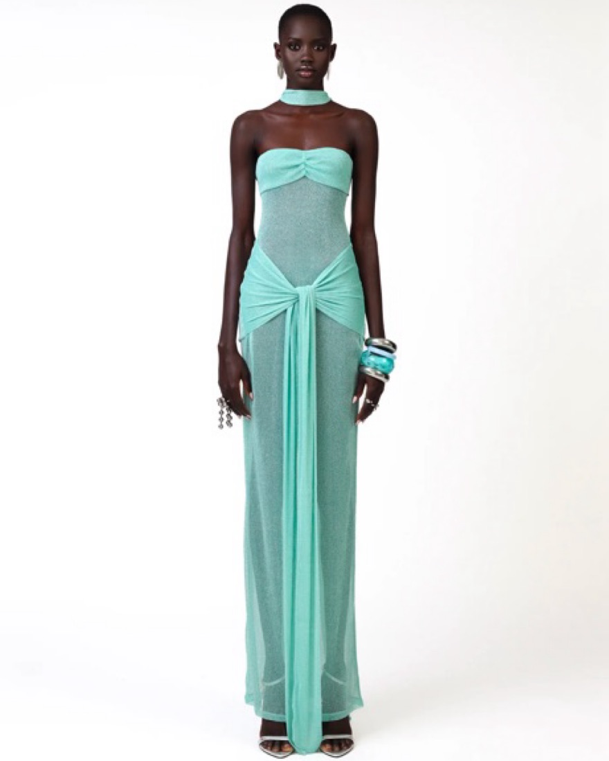With its all-over glittering twinkling sheen and lush mint colour, our Kesca dress will ensure all eyes are on you when you walk into the room. It's made from super-sheer mesh, ruched across the back with a wrap around detail to ensure the close fit flatteringly hugs your curves. Kesca comes with a