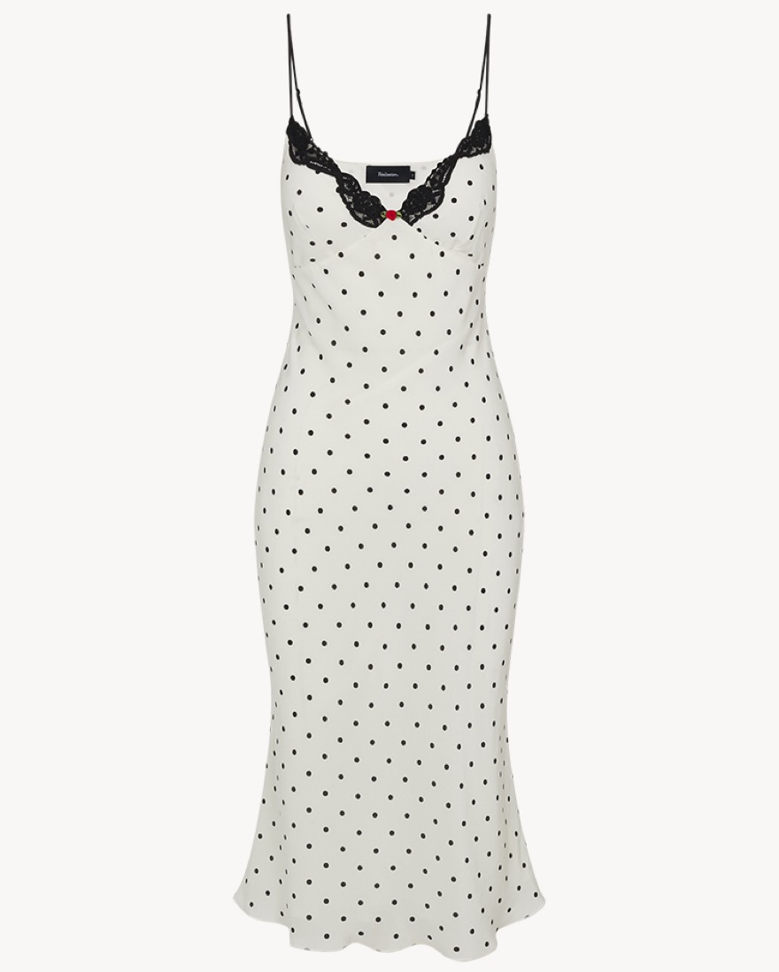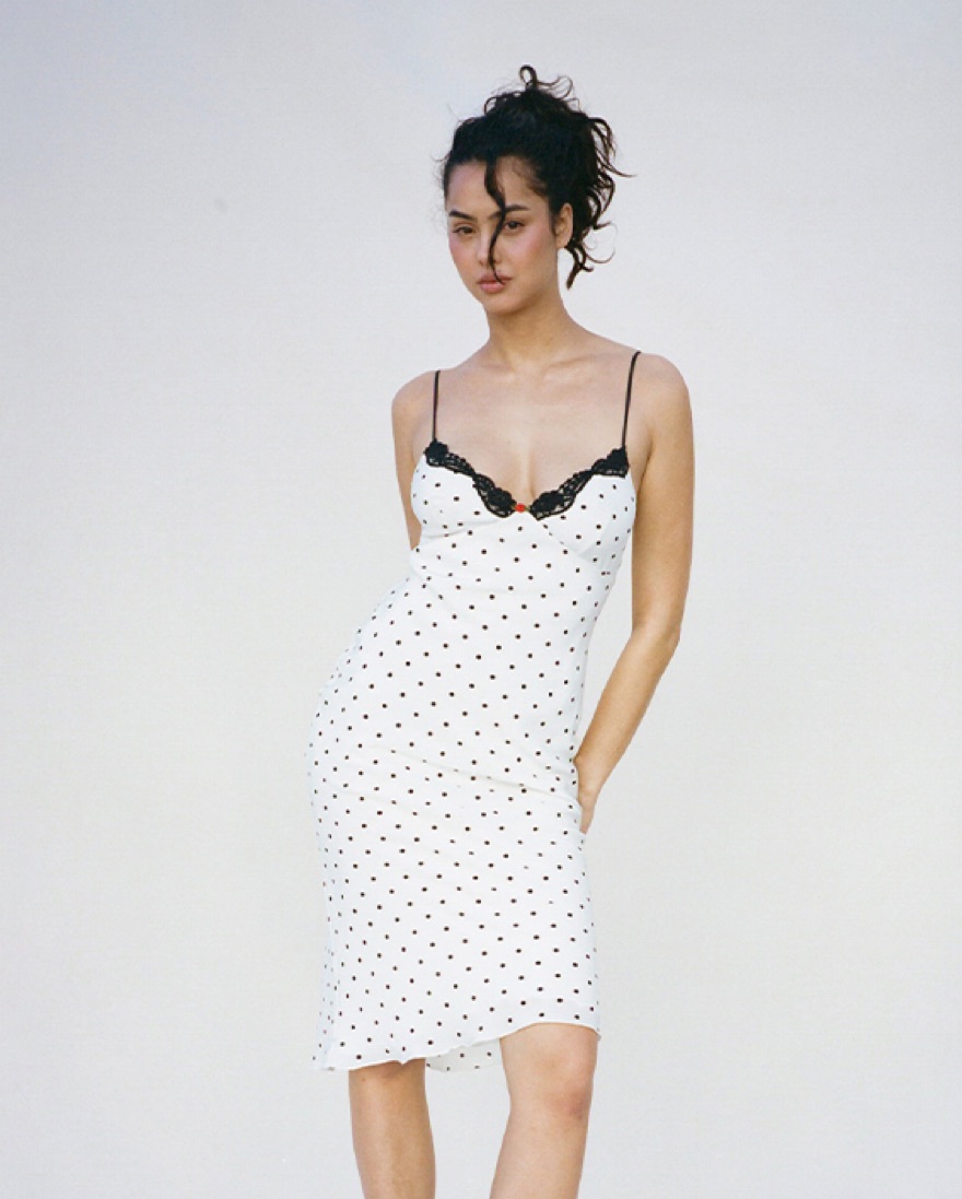 Great for a unique bridal or graduation look. Midi Dress with polka dots.