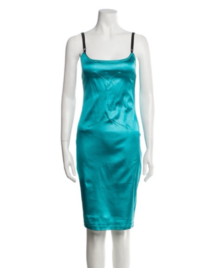 This dress is insanely good - from an early 2000s D&G collection with adjustable straps and the most gorgeous blue/turquoise color. Bodycon fit without a ton of stretch, but super flattering. Perfect for a sexy date night or special occasion. Size is IT42, which is a US6 (would work best for a 4/6)