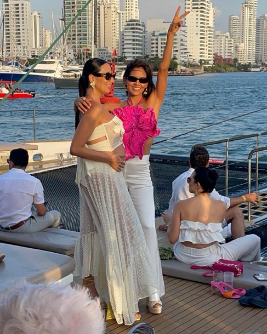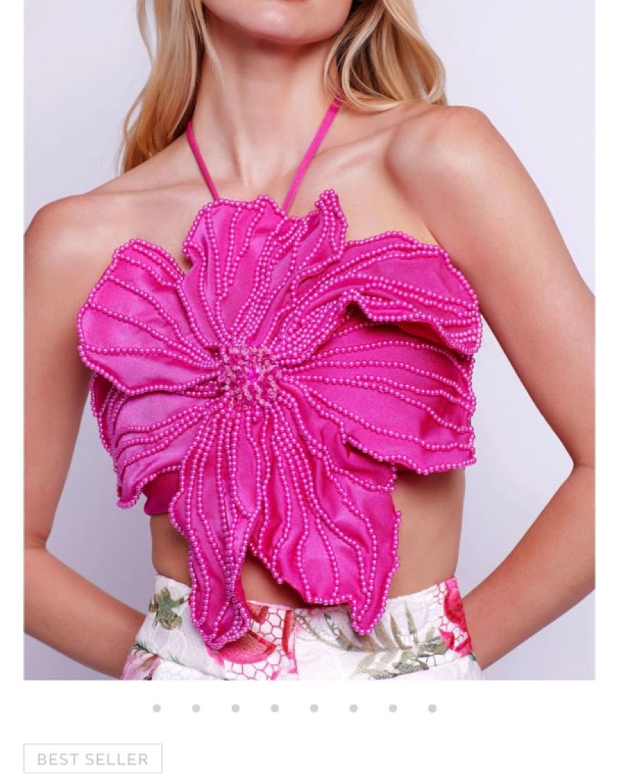 Only worn once- This vibrant and stylish outfit is perfect for a night out or a special occasion. The pink floral halter top and white wide leg pants create a chic and effortless look.