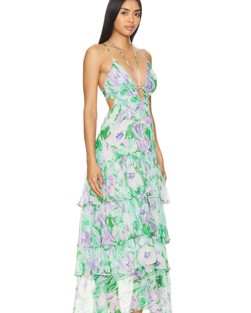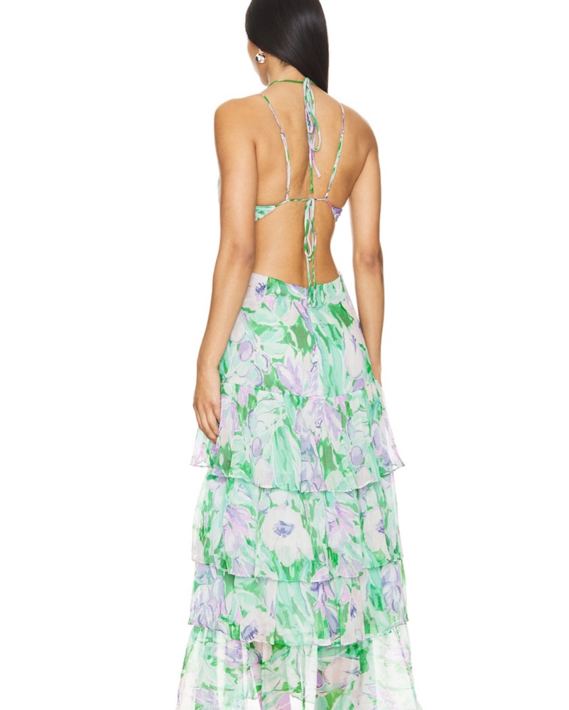 This stunning maxi dress is perfect for a spring or summer event. The vibrant floral print and flowing silhouette create a stylish and feminine look.