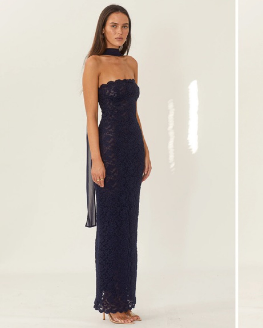 Step out in grace with Meredith. Made from vintage-inspired lace with scalloped edges, she is the perfect balance between classic evening glamour and seductive allure. Meredith is a strapless silhouette with delicate bust shaping, her lined ensemble is designed to compliment your feminine curves in