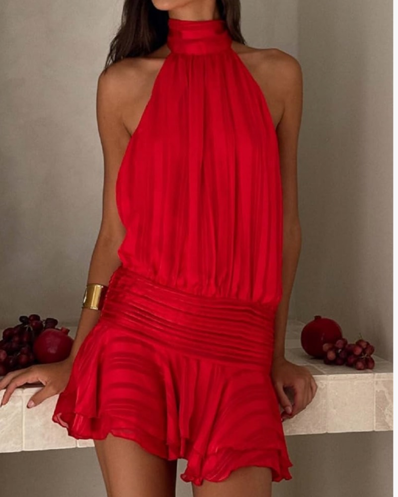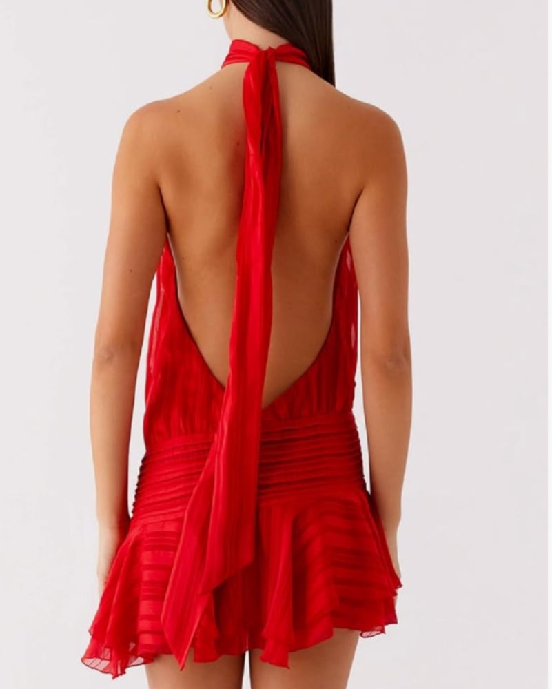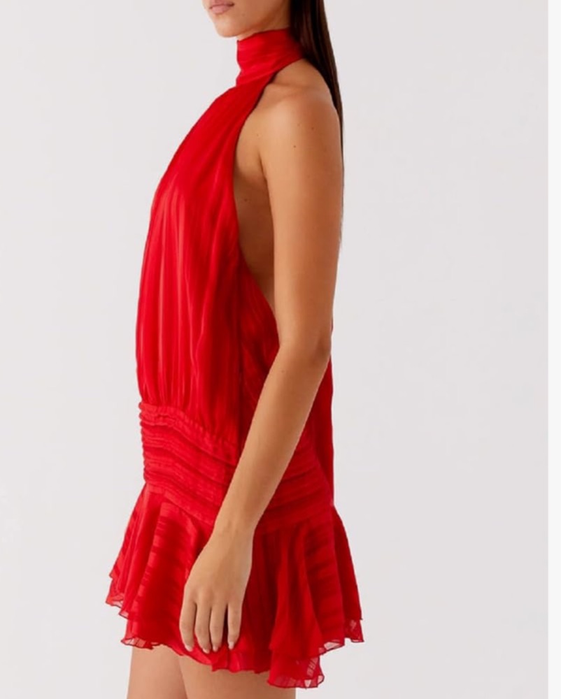 Vibrant Red Halter Ruffle Dress