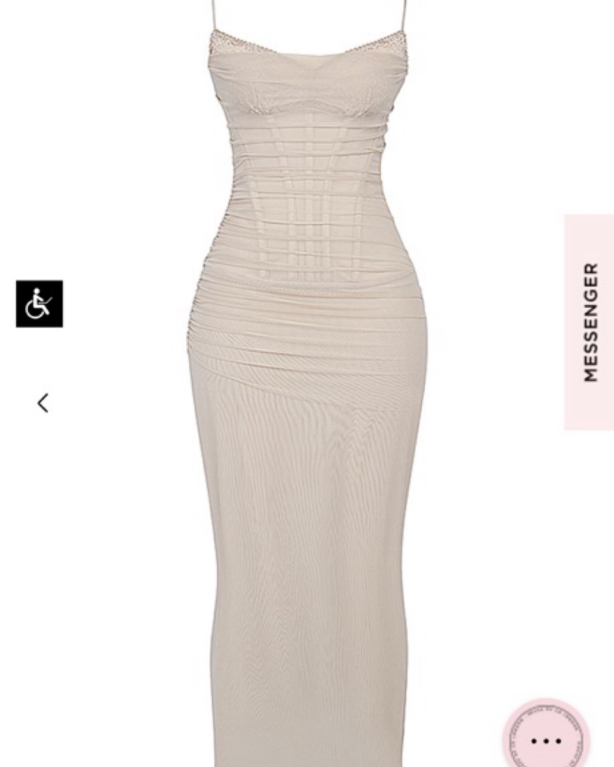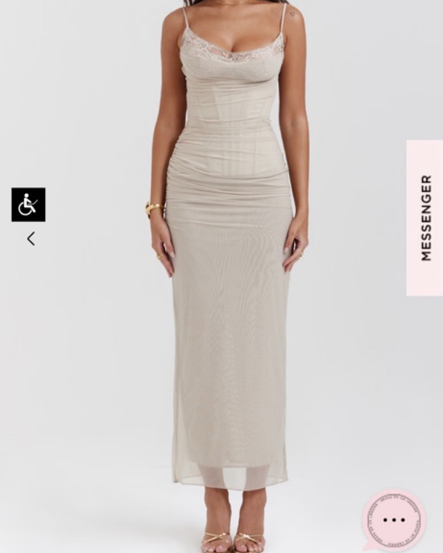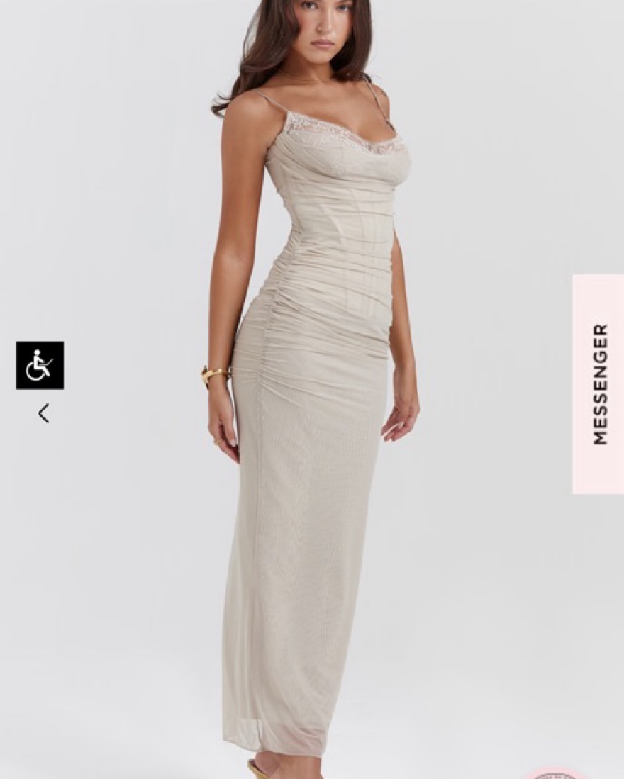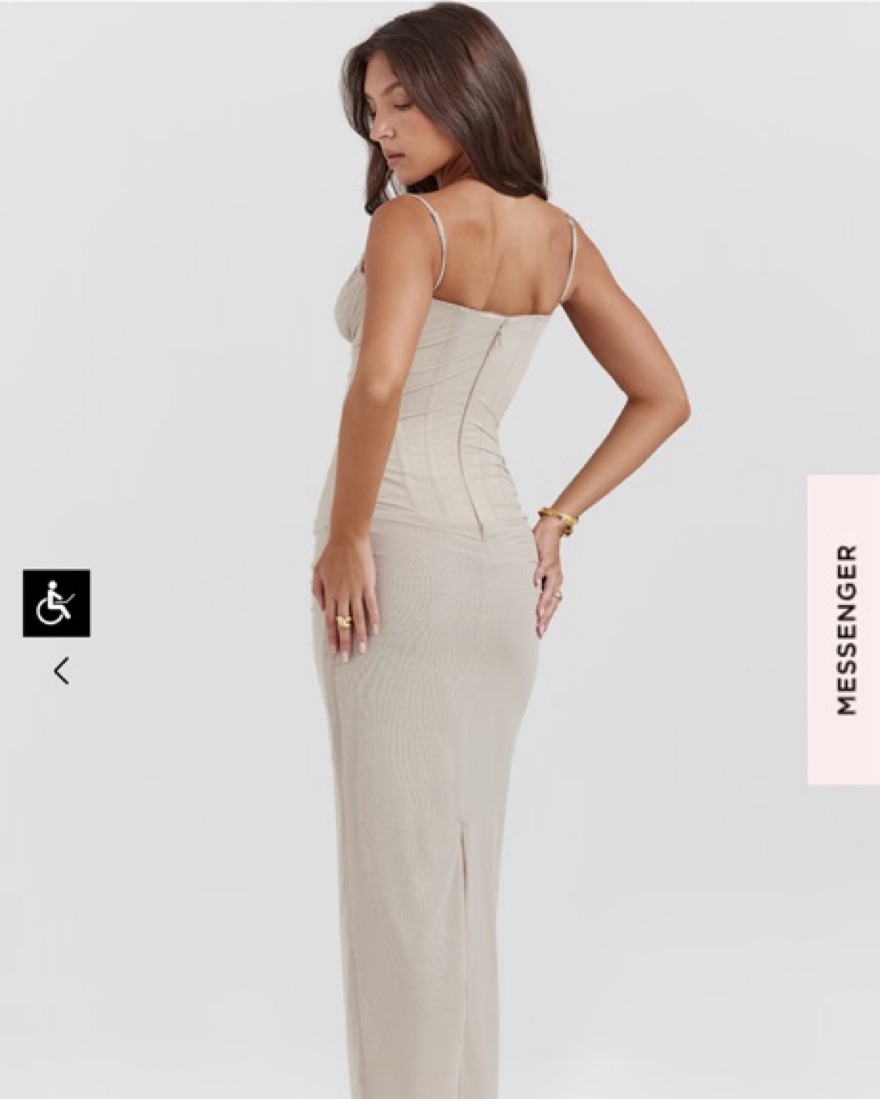 House of CB corset dress in sand, very stretchy but sucks you in and keeps you snatched!