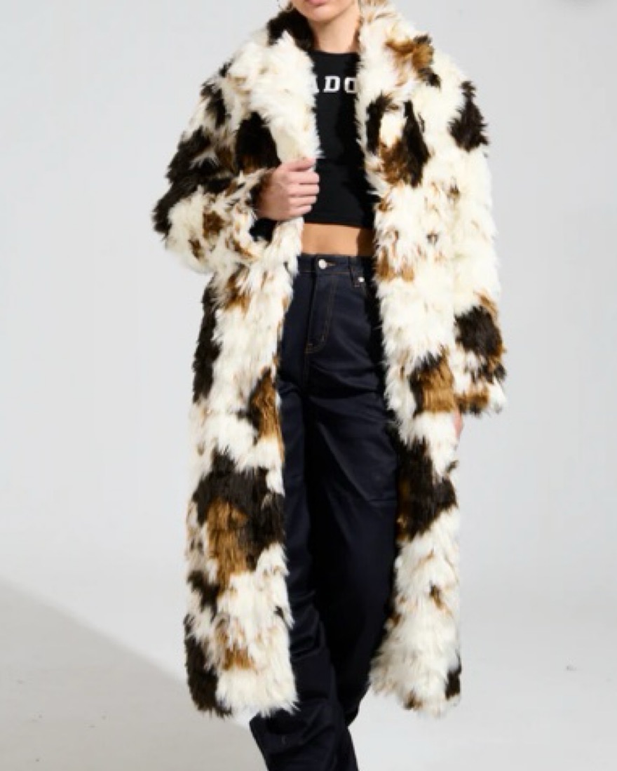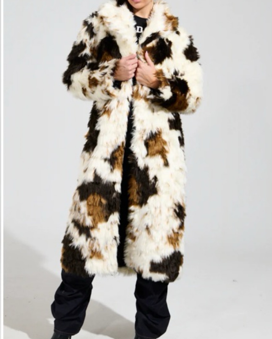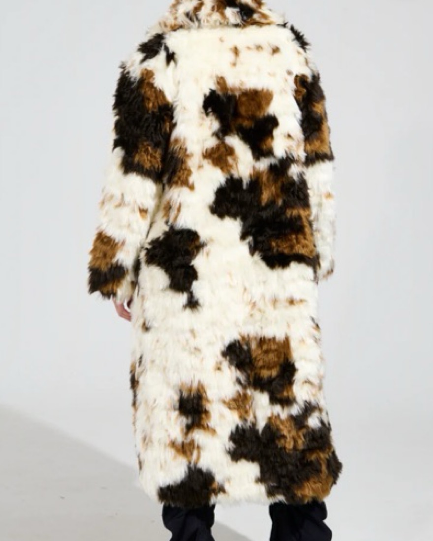 Cow print fur coat
