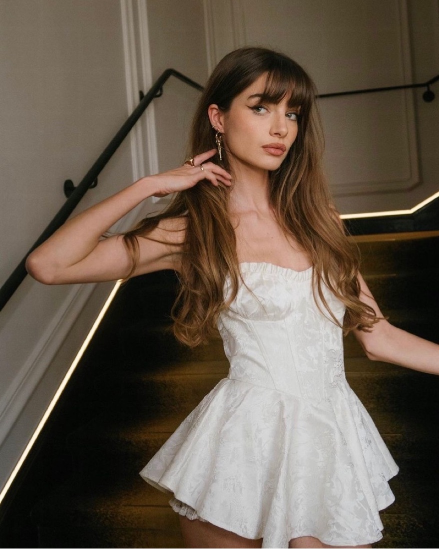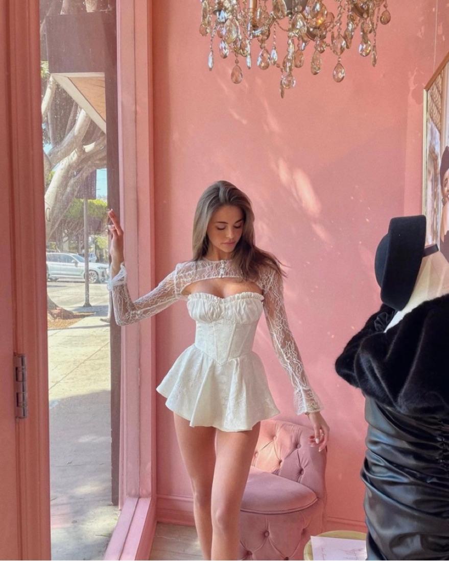 Nana Jacqueline Airina Dress White Size XL. Features mini length, strapless, silk lace fabric, corset bodice. Tags: bride, bridal, bride to be, wedding, engagement, rehearsal dinner, elopement, feminine, chic, classic