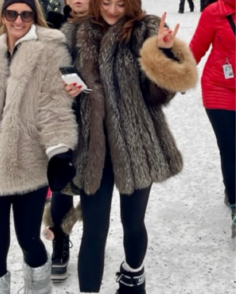 Elevate your winter style with this stunning real silver fox fur coat. Super warm, eye catching, very glamorous.