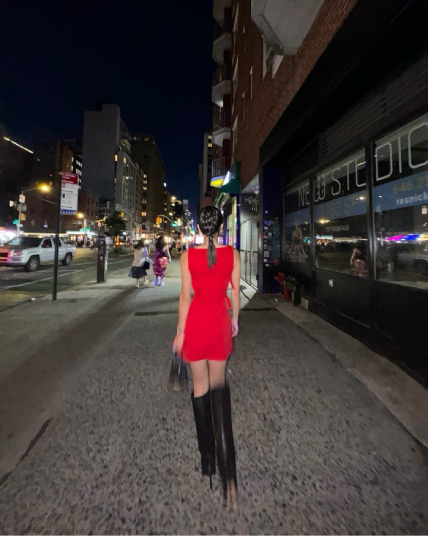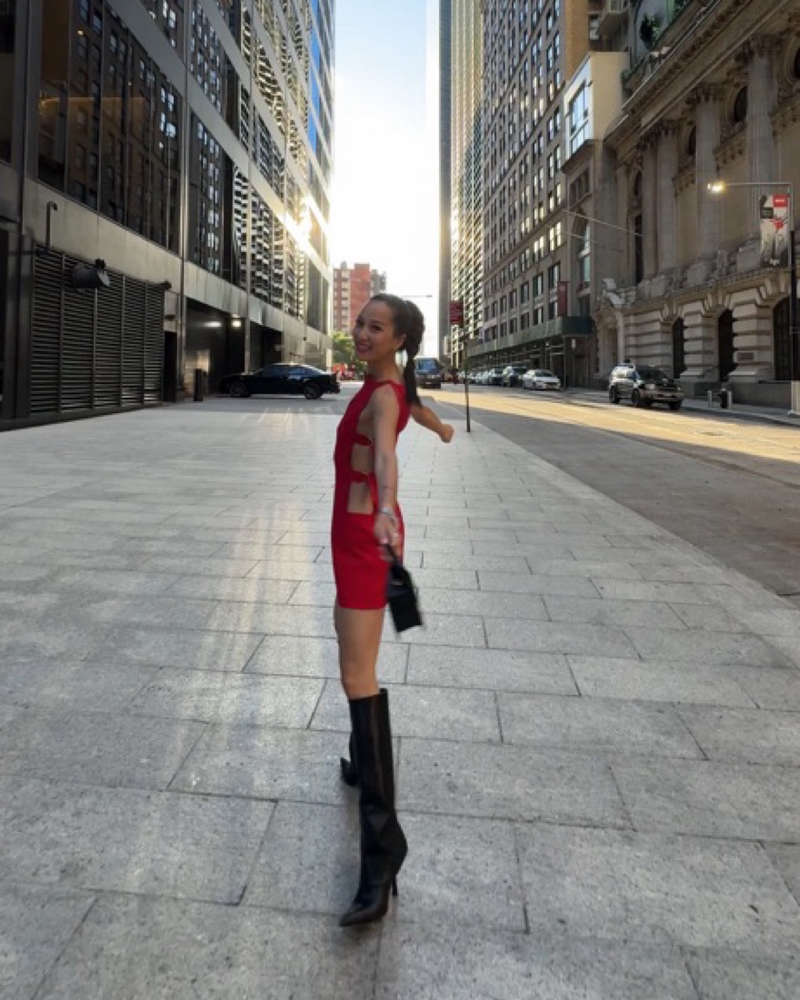 Fun and sexy red dress with side buckles perfect for a night out ♥️
